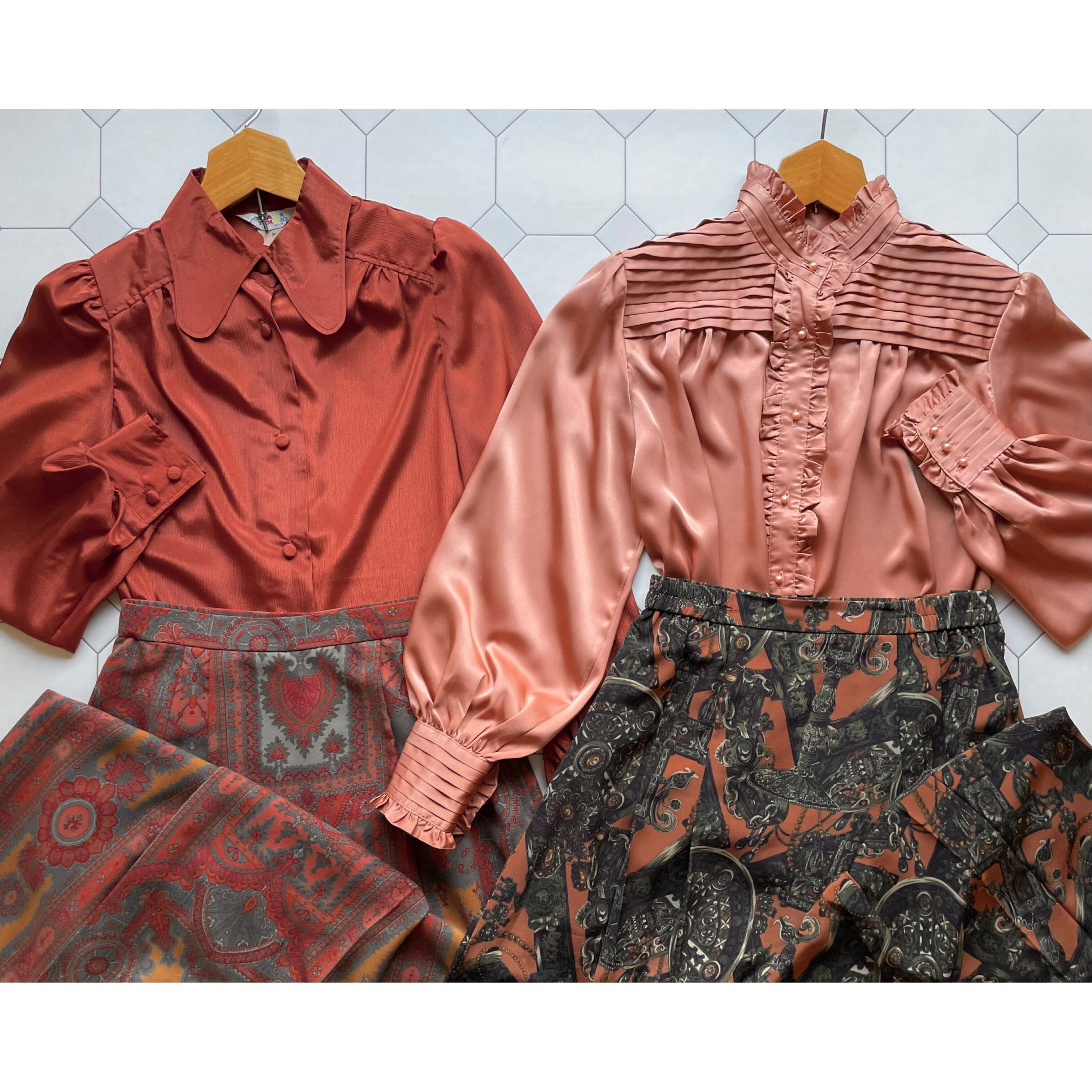 oriental panel pattern tuck skirt 〈レトロ古着 オリエンタル パネル柄 タックスカート ジャパンヴィンテージ〉