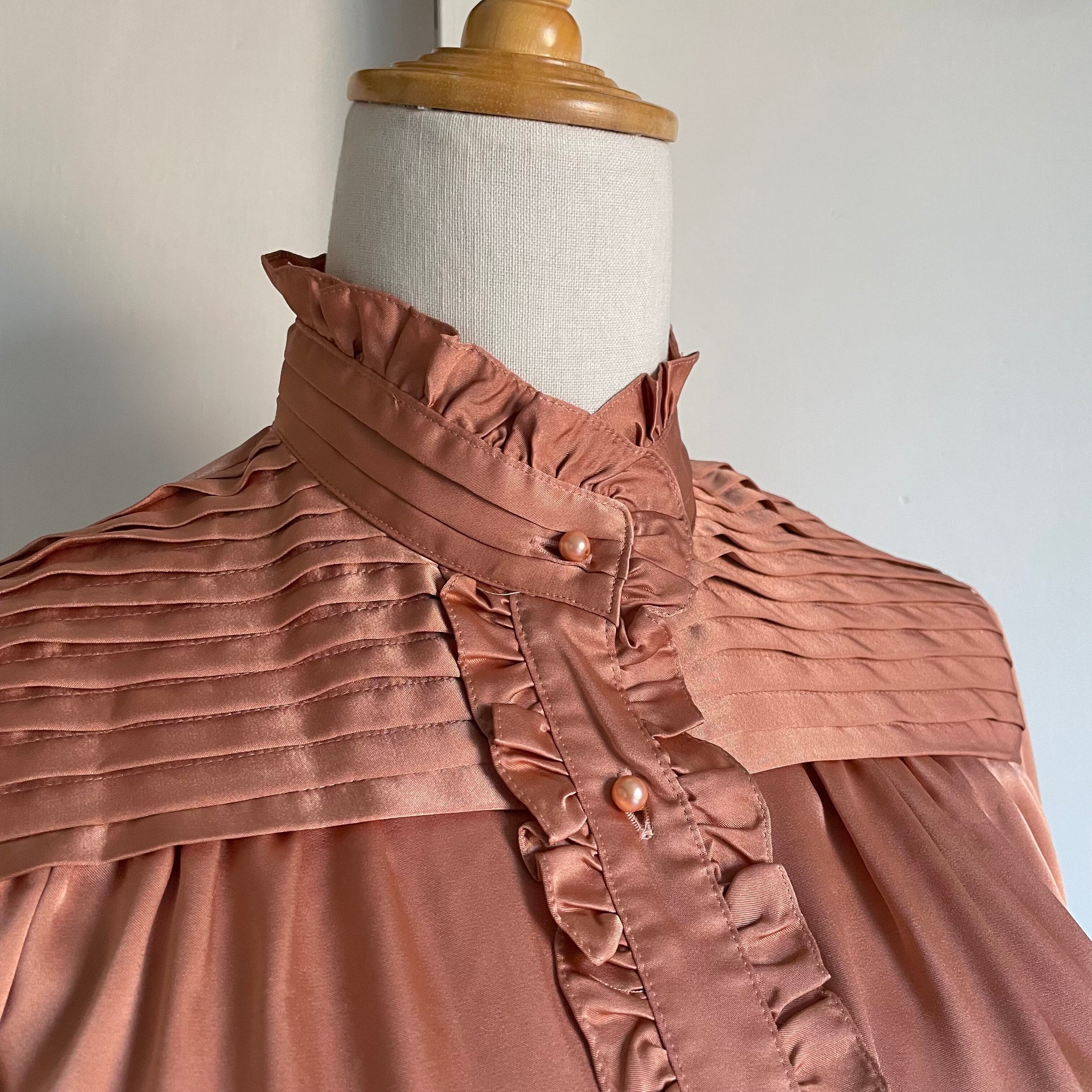 dull coral orange frill & tuck blouse 〈レトロ古着 ダルコーラルオレンジ フリル&タック ブラウス ジャパンヴィンテージ〉