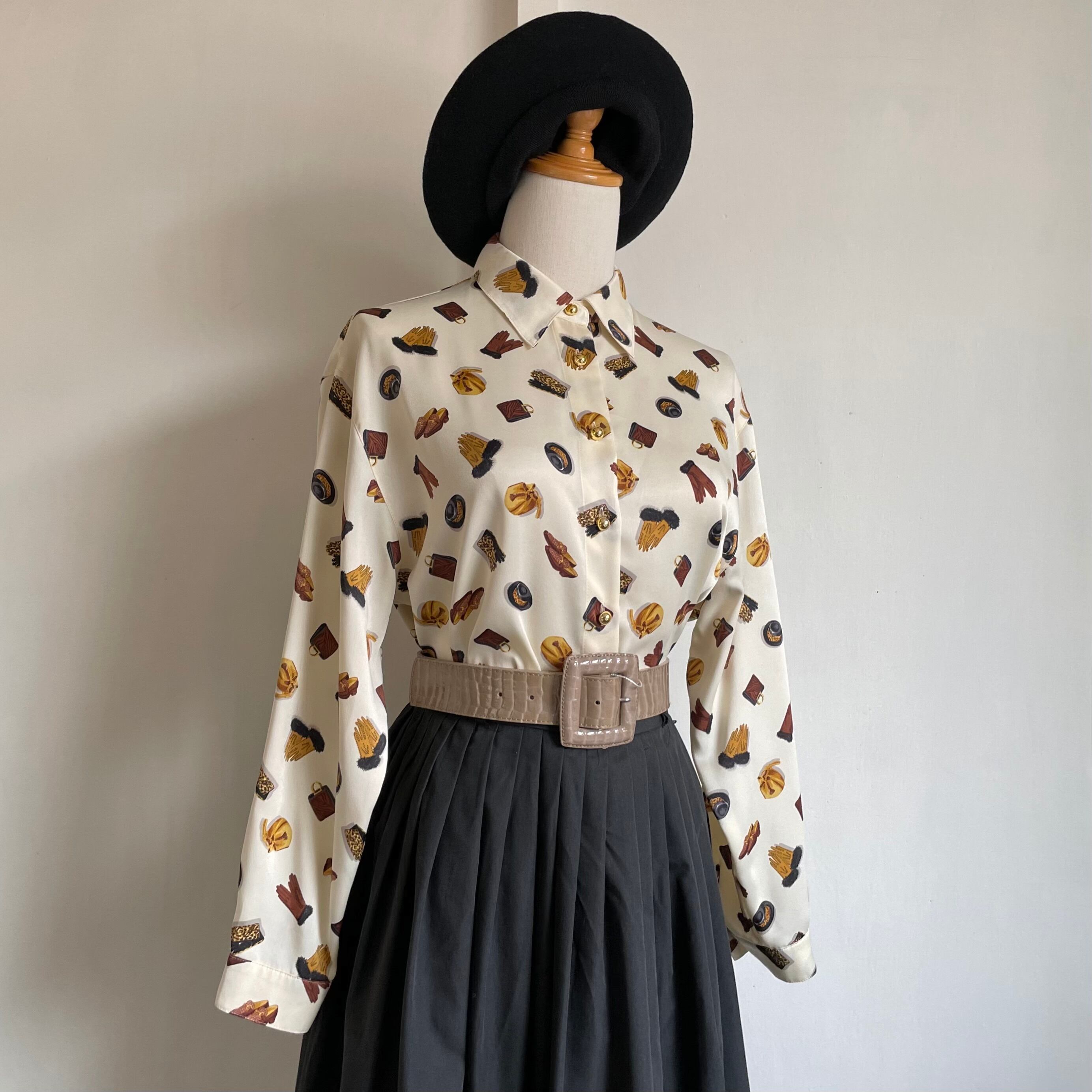 fashion accessory pattern shirt 〈レトロ古着 クラシカル ファッションアイテム柄シャツ 日本製 ジャパンヴィンテージ〉