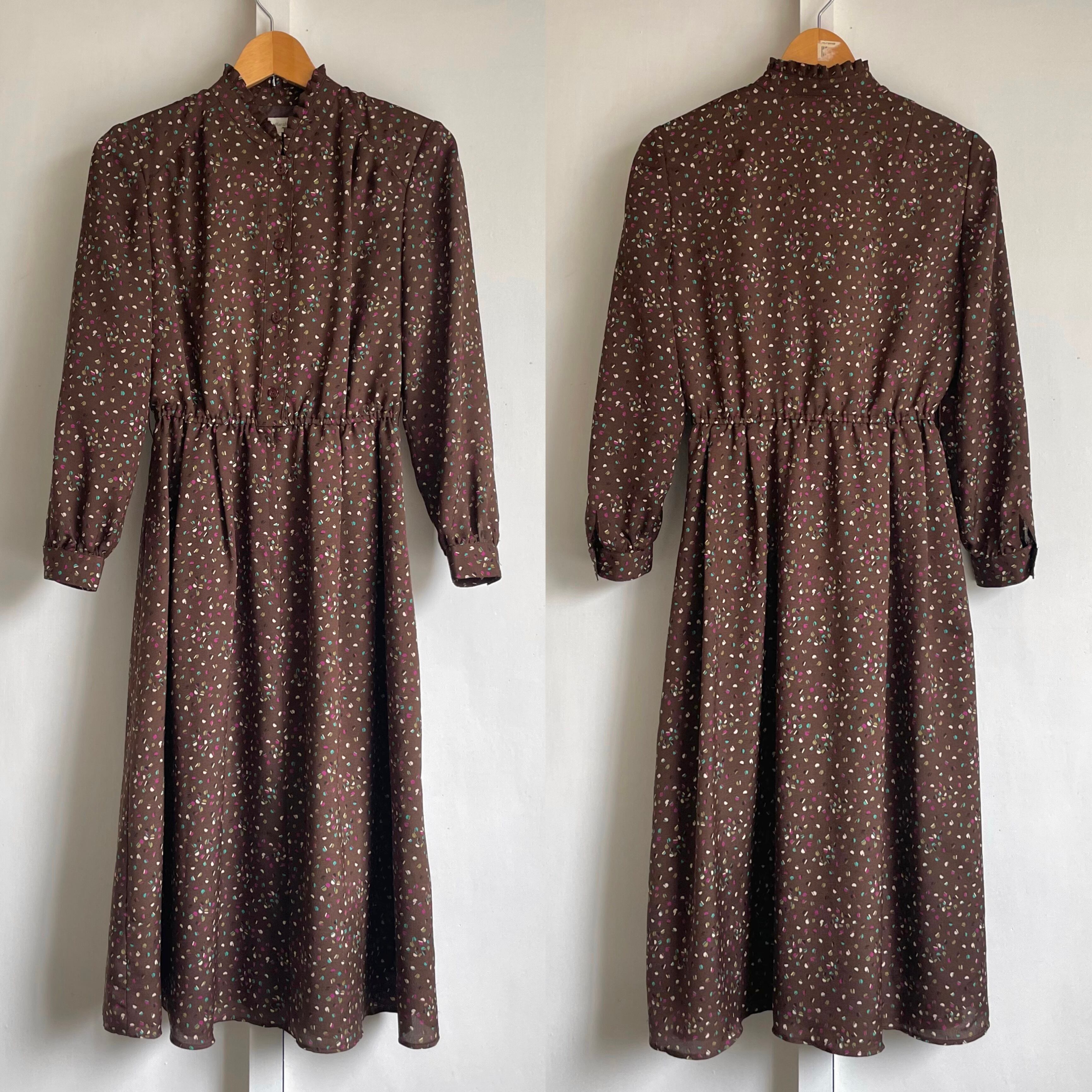 multicolor small pattern frill neck dress〈レトロ古着 マルチカラー スモールパターン フリルネック ワンピース ジャパンヴィンテージ〉