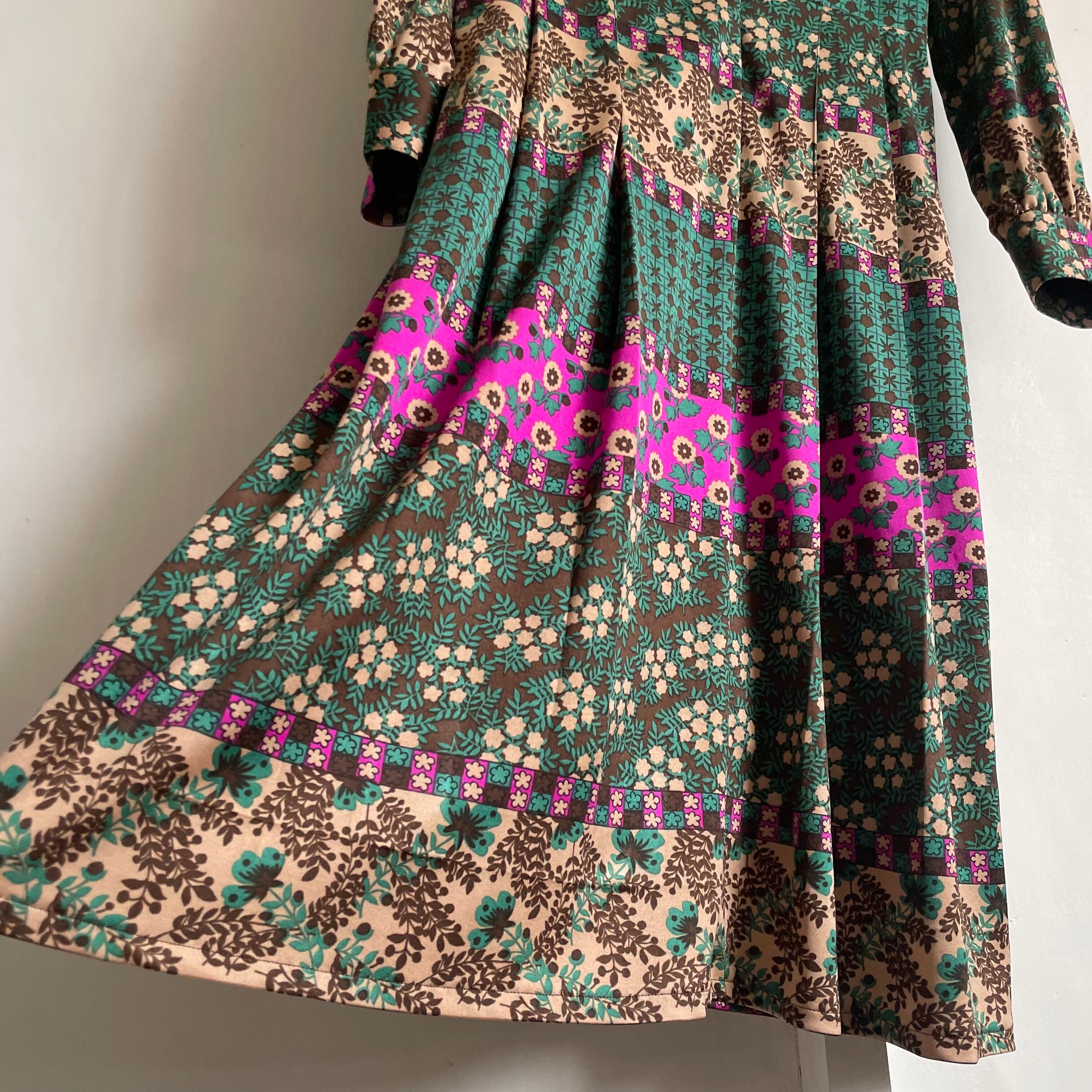 psychedelic pattern tuck dress〈レトロ古着 サイケデリック柄 タックワンピース 日本製 ジャパンヴィンテージ〉