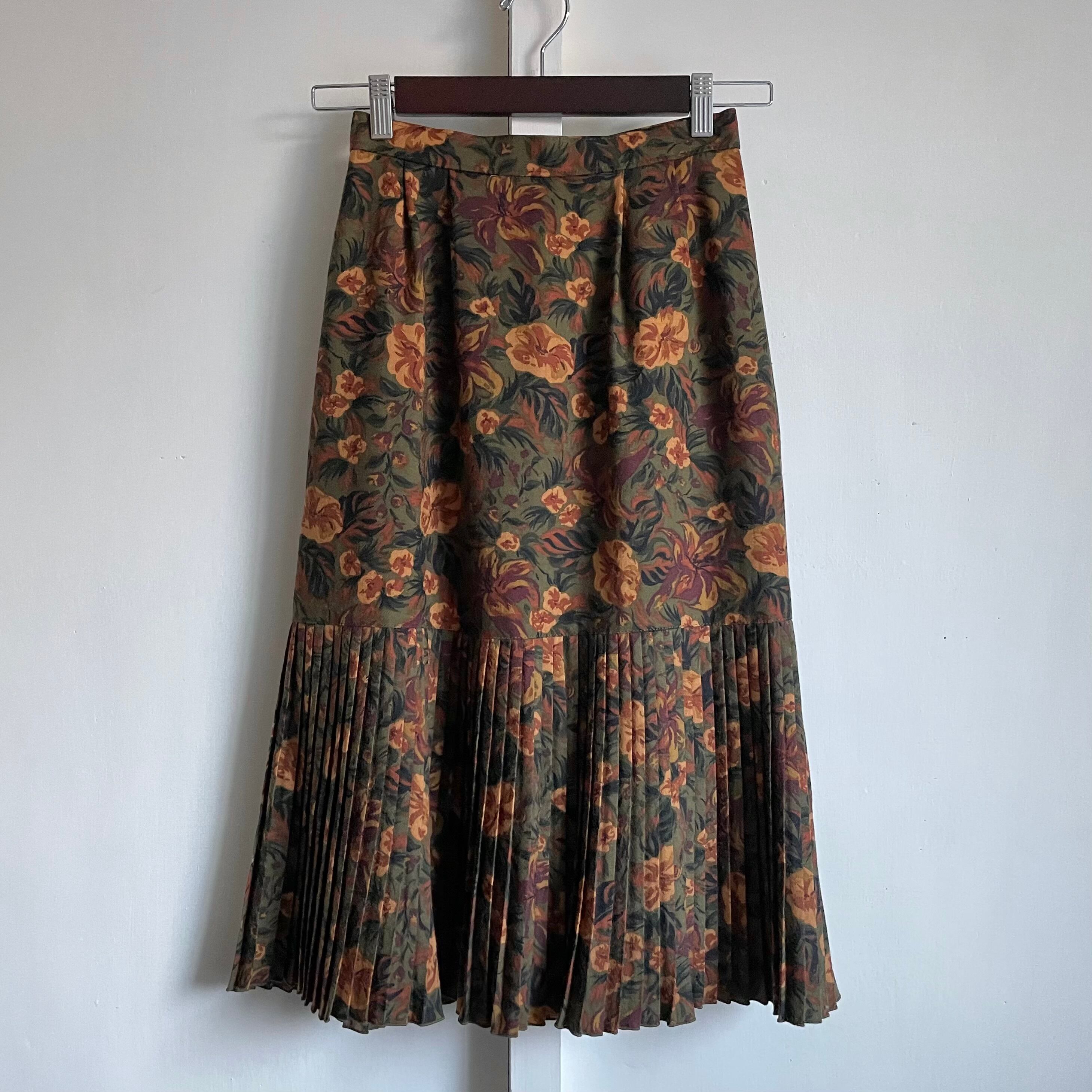 flower pattern pleated hem tight skirt 〈レトロ古着 花柄 プリーツヘム タイトスカート 日本製 ジャパンヴィンテージ〉