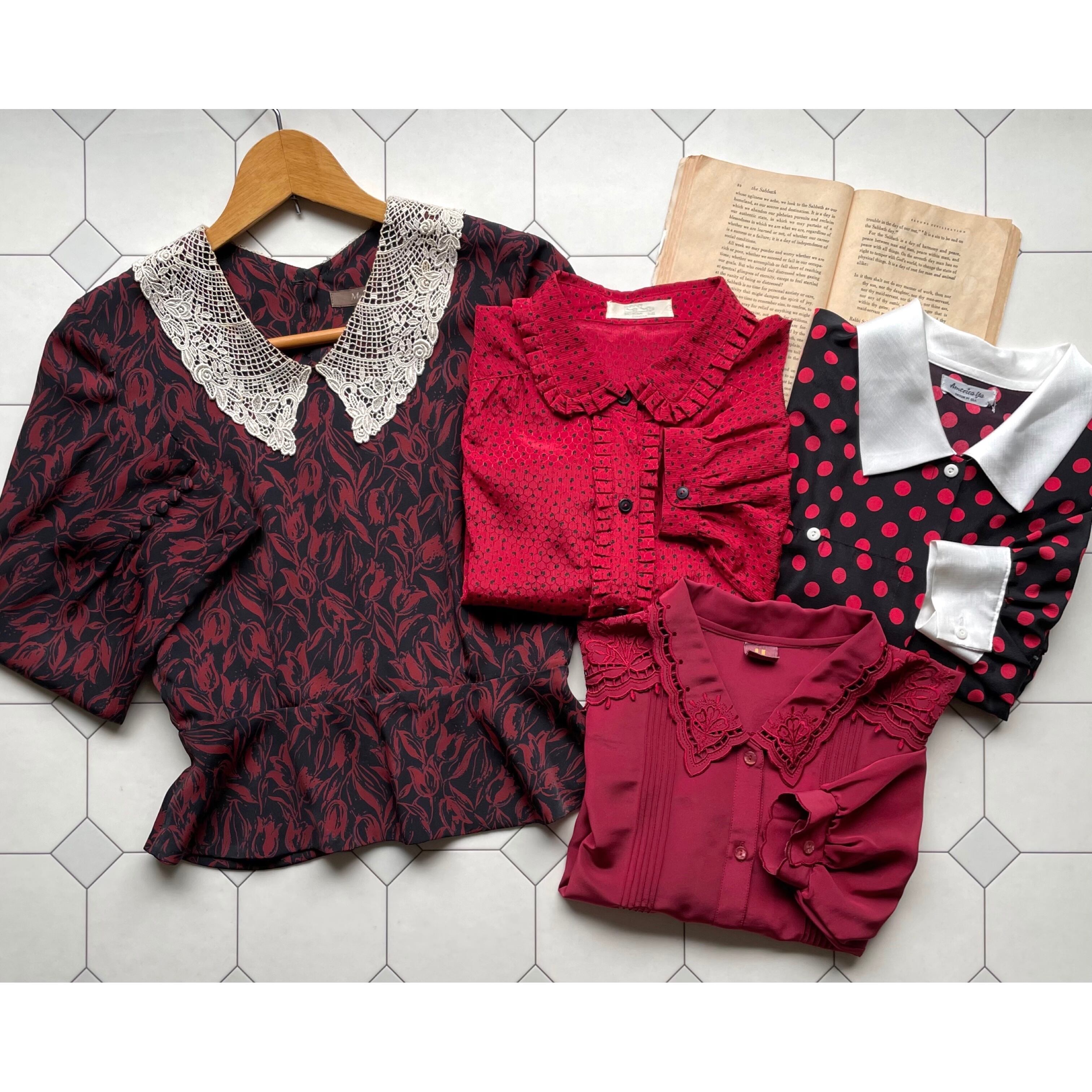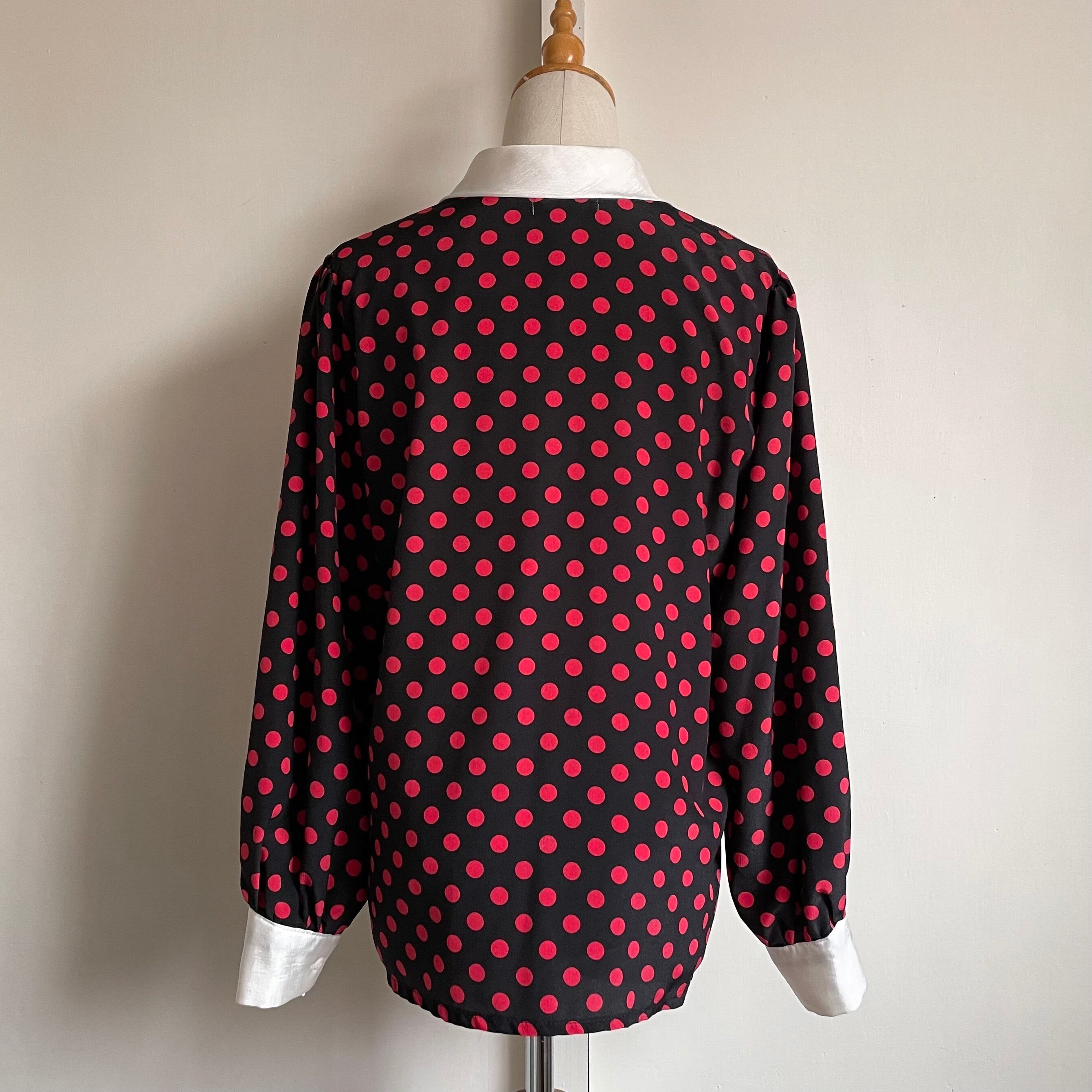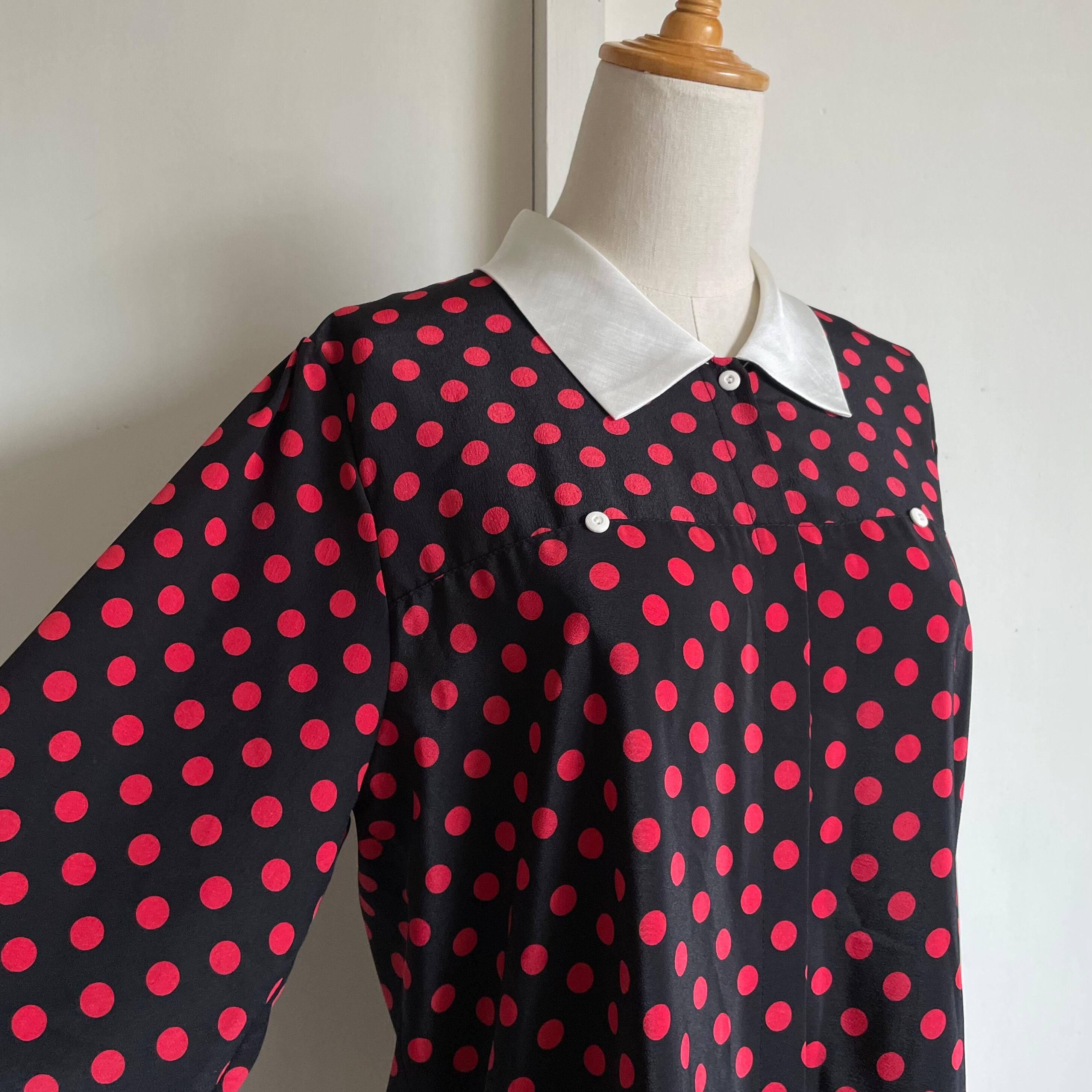black & red dot bicolor blouse 〈レトロ古着 ブラック&レッド ドット バイカラー ブラウス ジャパンヴィンテージ〉