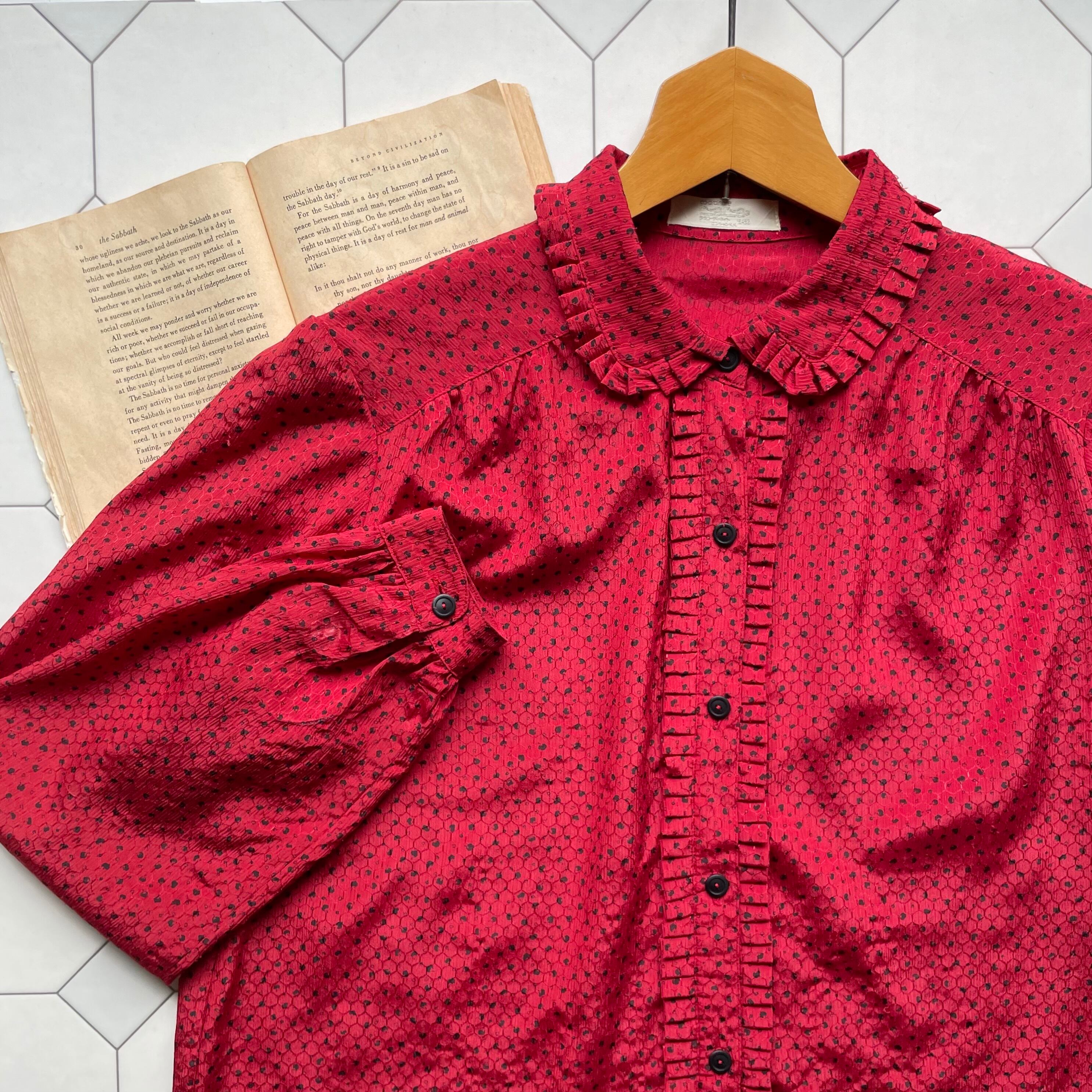 tuck frill round collar red blouse 〈レトロ古着 タックフリル ラウンドカラーレッドブラウス ジャパンヴィンテージ〉