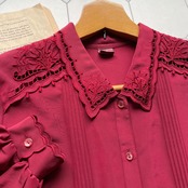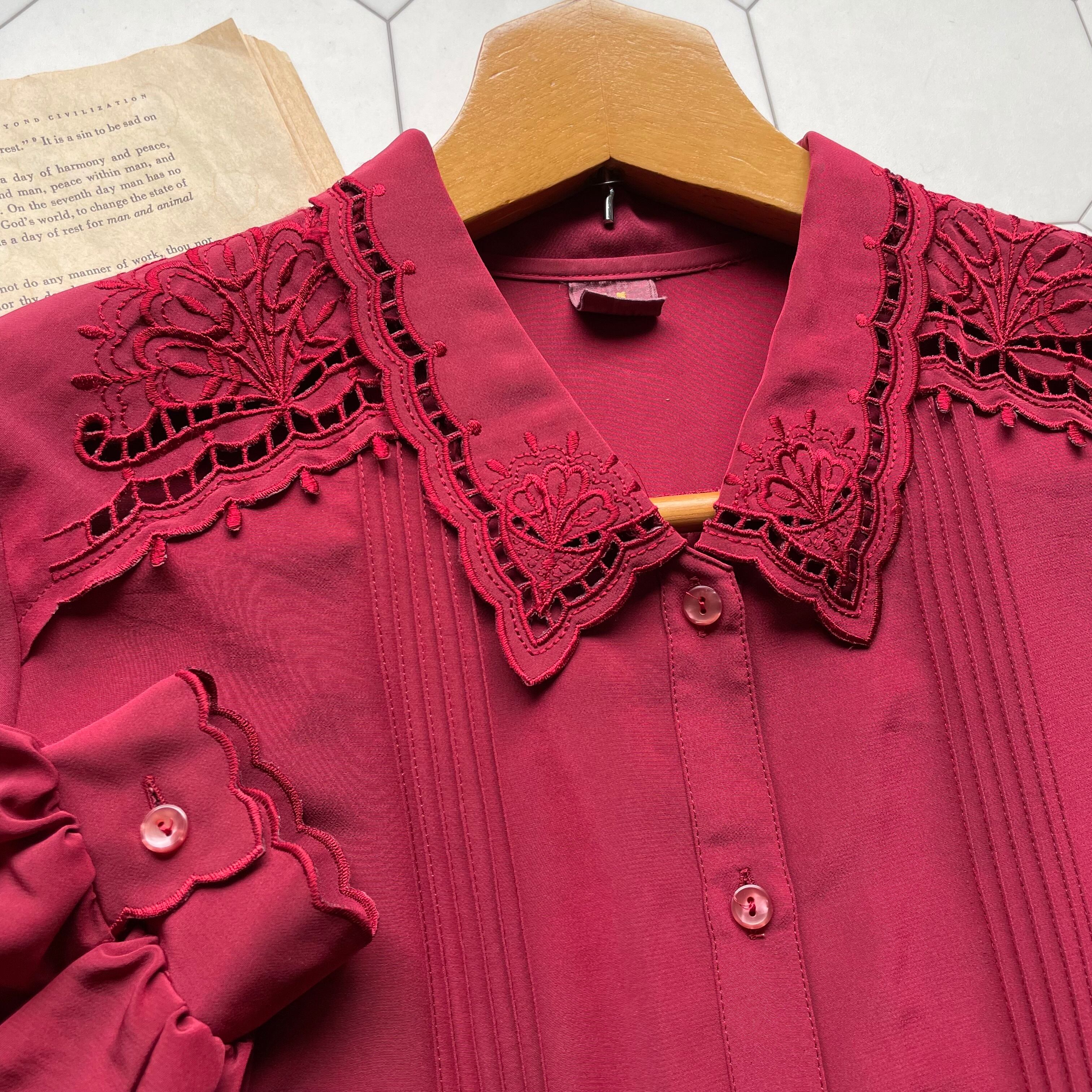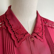 cutwork embroidered red blouse 〈レトロ古着 カットワーク刺繍 レッド ブラウス ジャパンヴィンテージ〉
