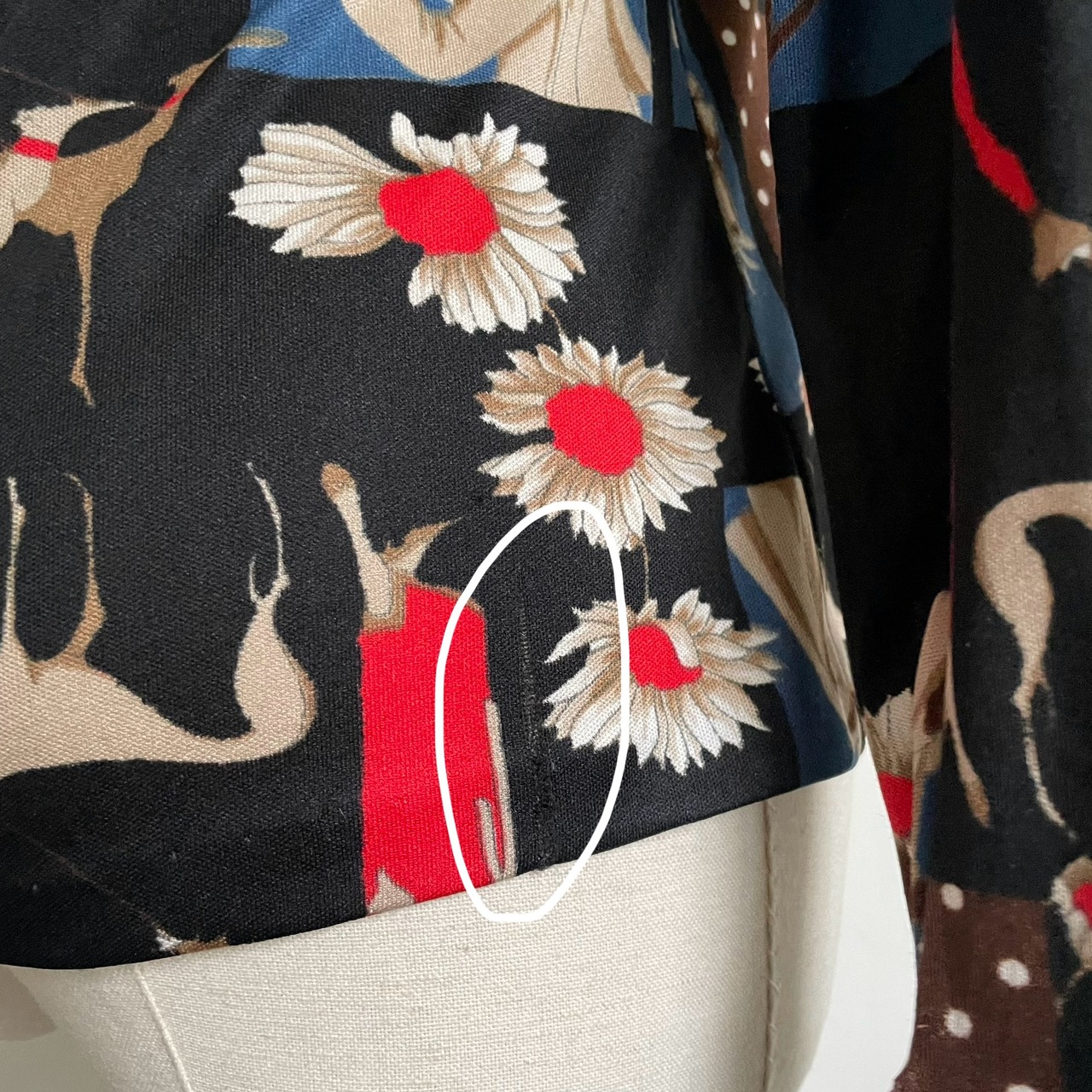 後ろの裾に糸つれあり