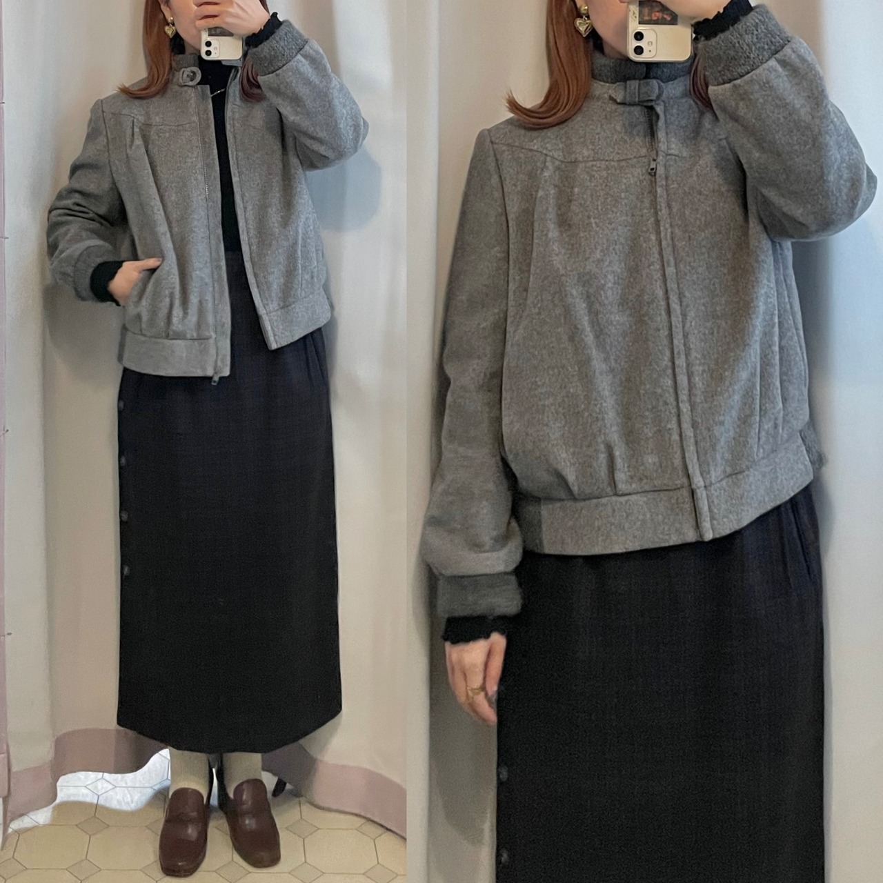 stand collar wool & cashmere blouson〈レトロ古着 スタンドカラー ウール&カシミヤ ブルゾン フランス製〉