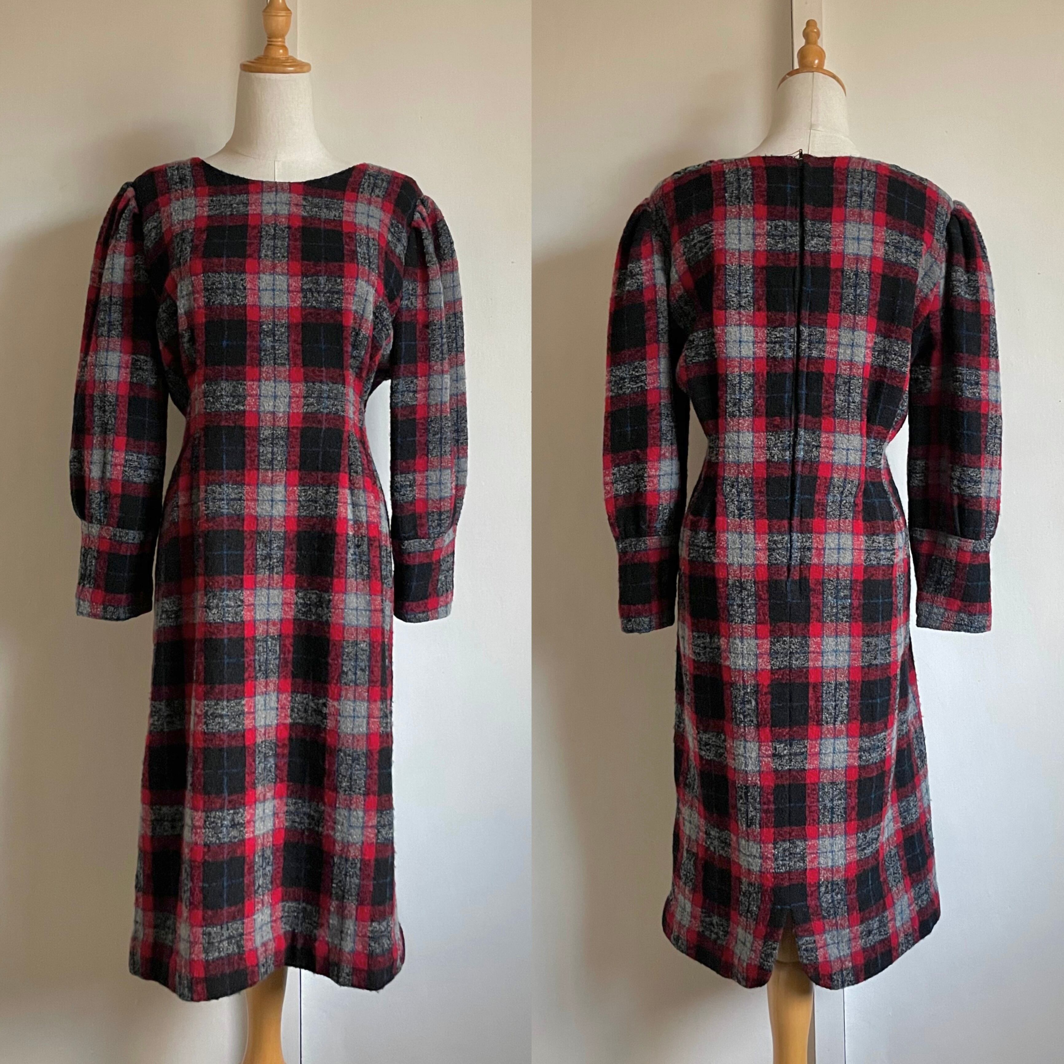 こちらは赤に黒やグレーのタータンチェックのタイトワンピース