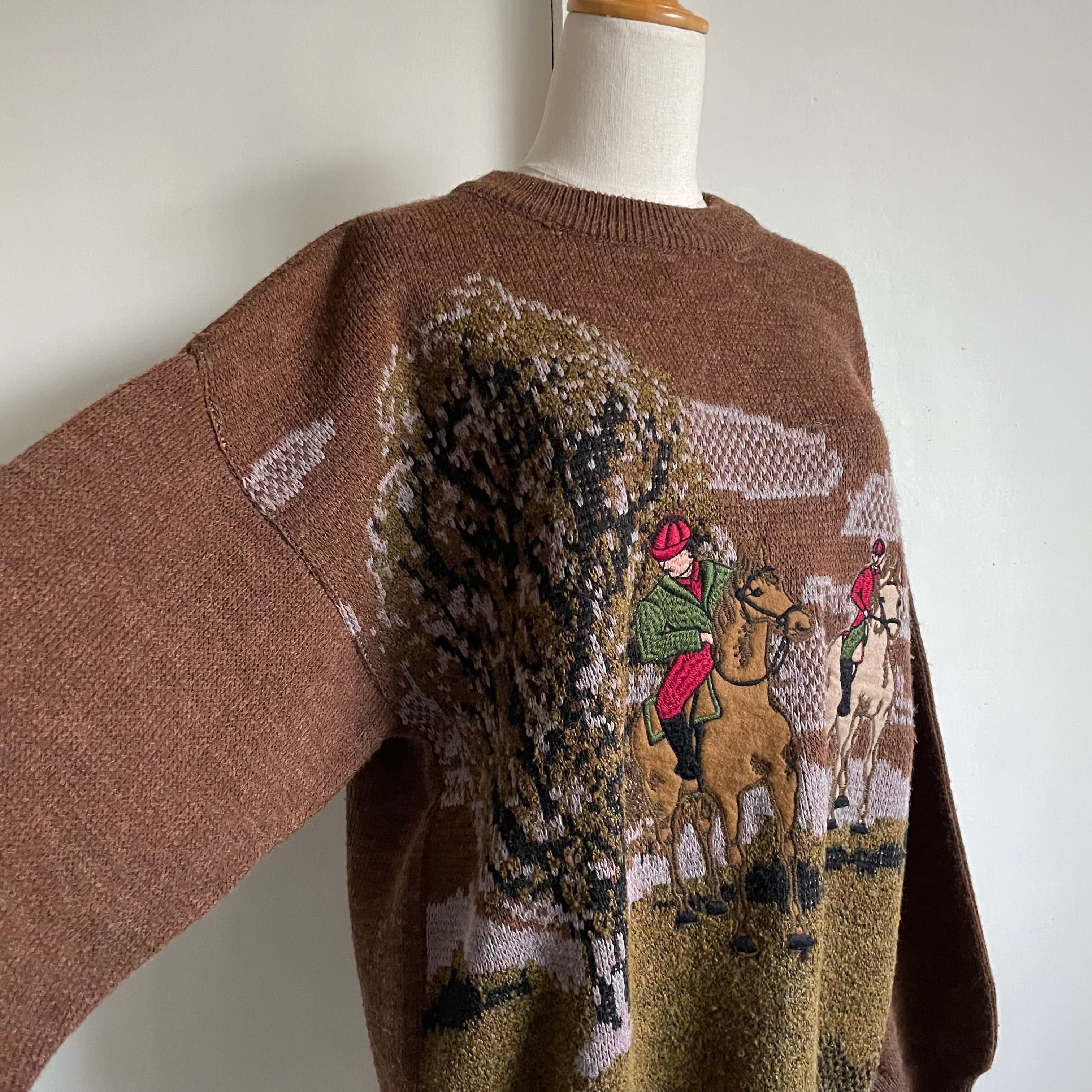 刺繍とアップリケで乗馬のモチーフがあしらわれたイタリア製のセーター