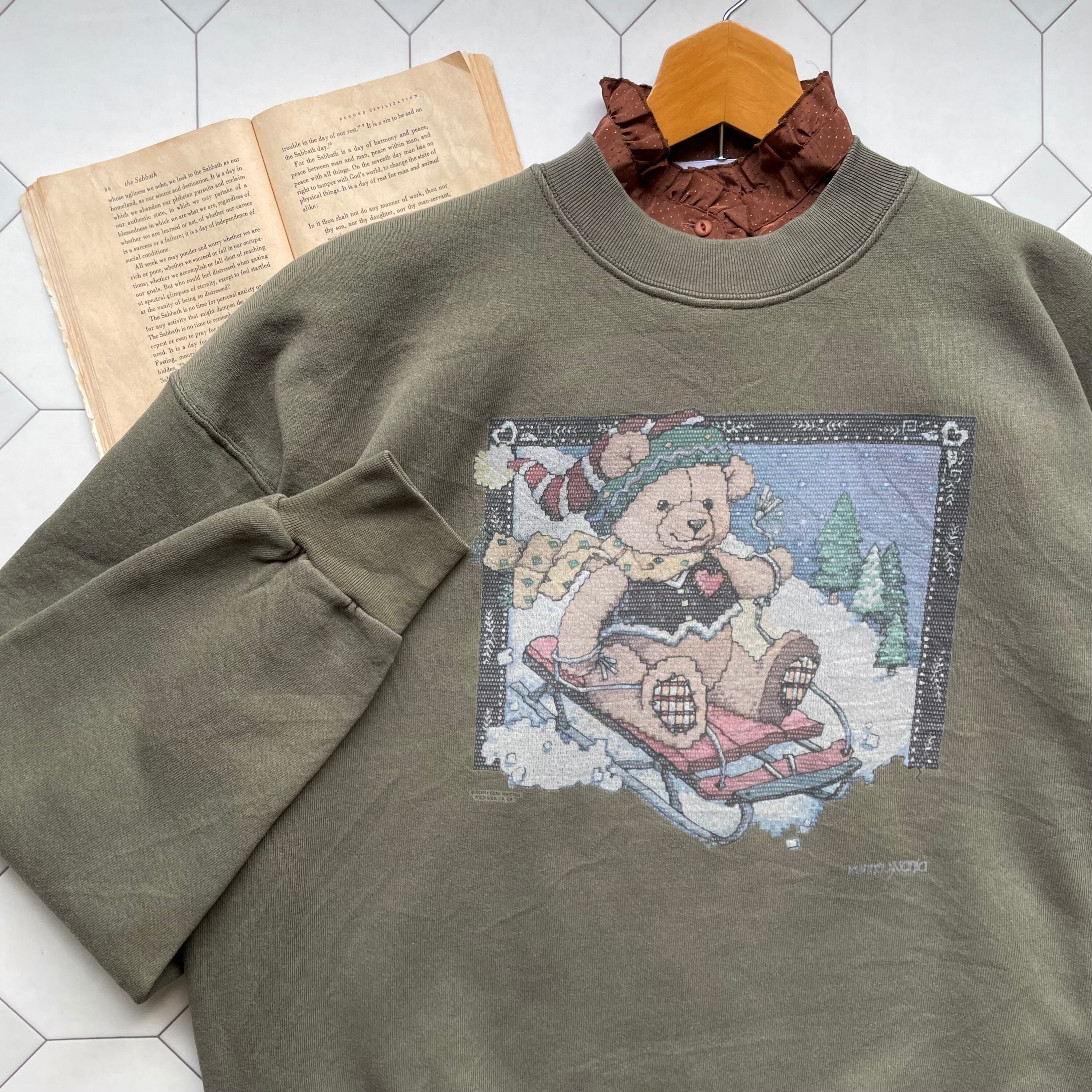sledding teddy bear sweatshirt 〈レトロ古着 ソリ遊び テディベア スウェット くま 〉