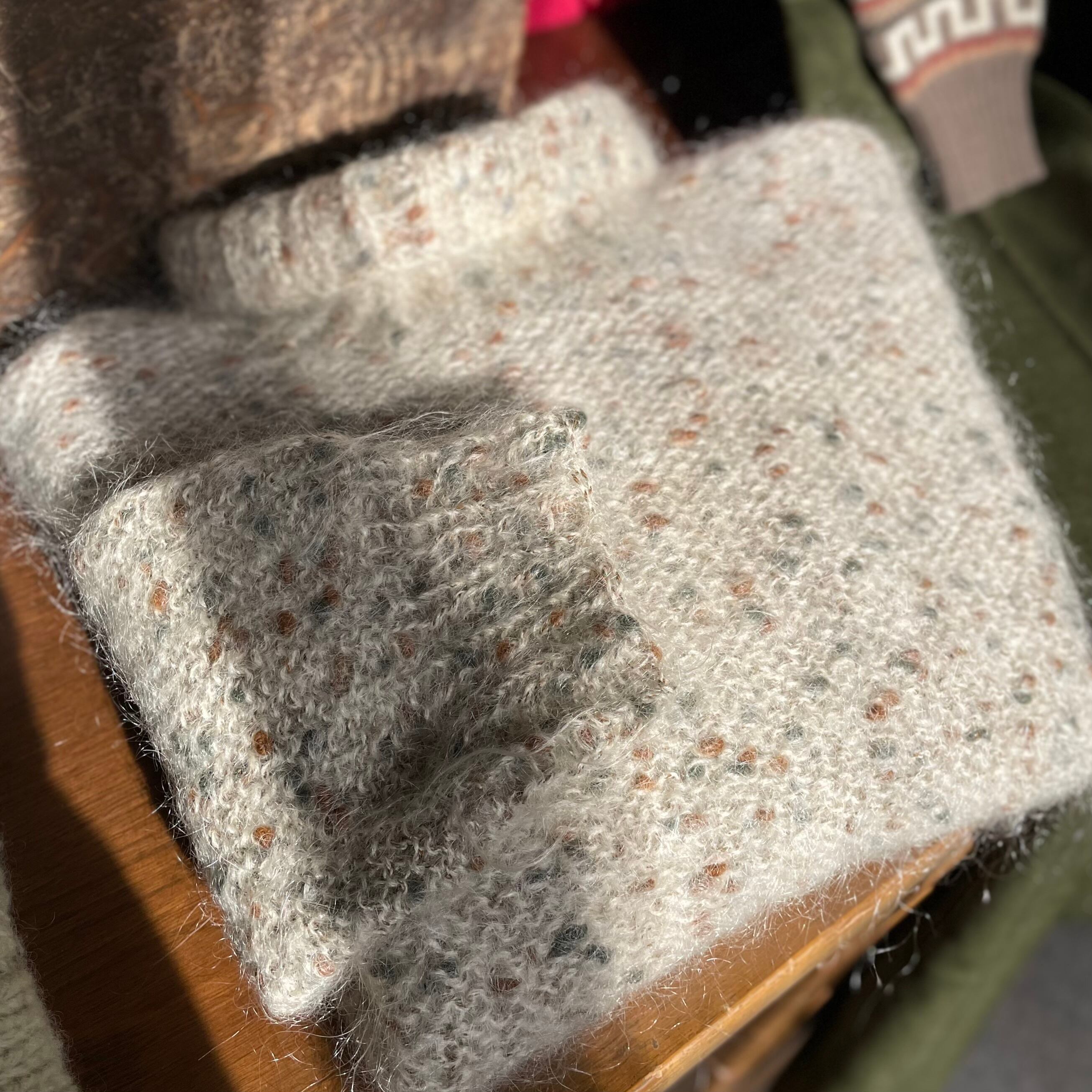 ふんわりと長い毛足が可愛い手編みのオフタートルのニット