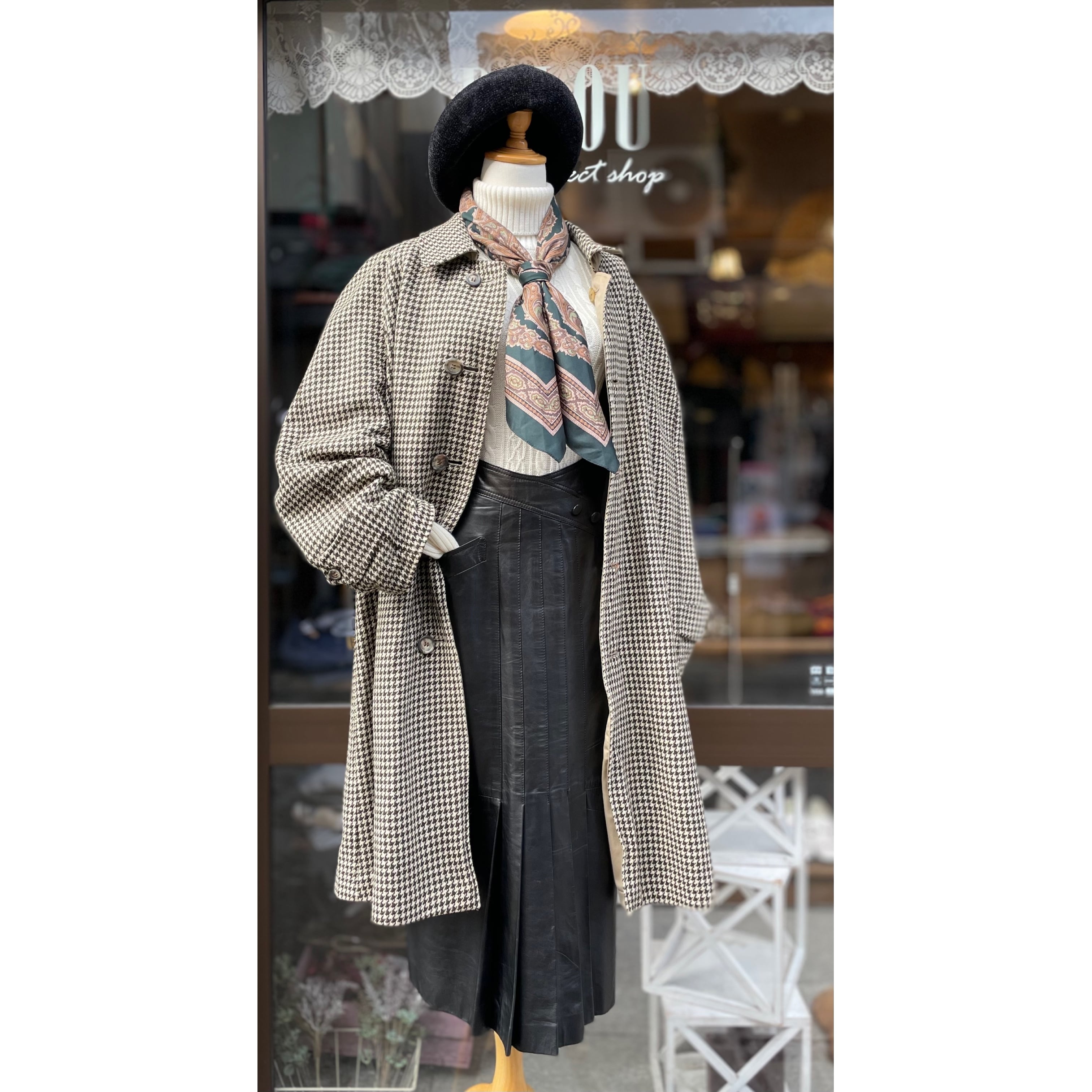 houndstooth tweed soutien collar coat〈レトロ古着 千鳥格子柄 ツイード ステンカラーコート ジャパンヴィンテージ〉