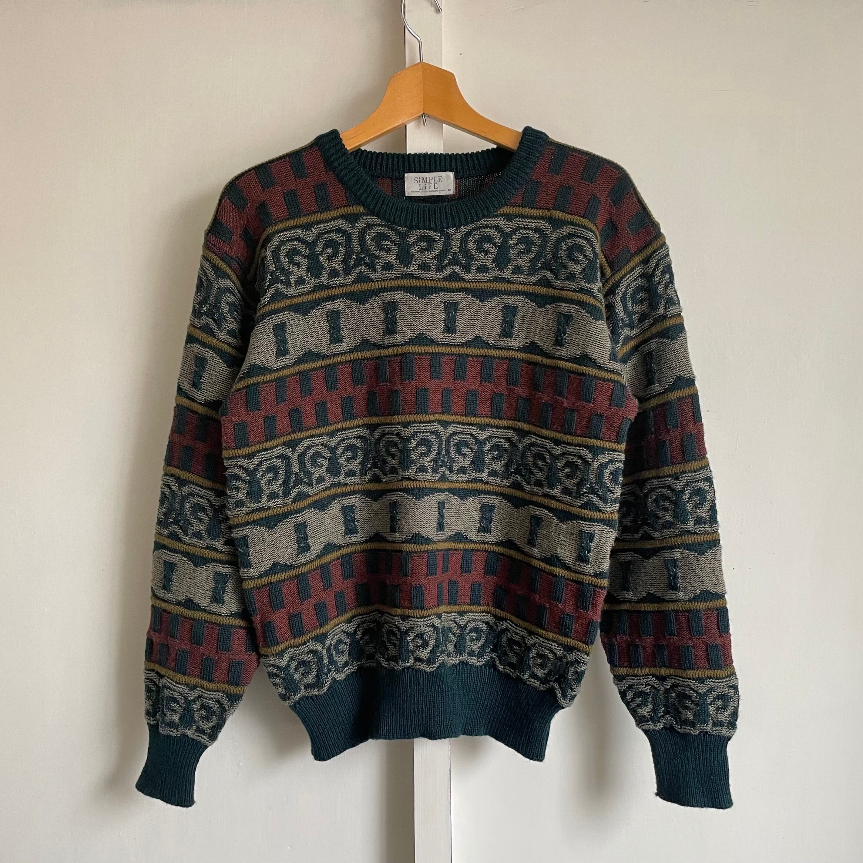 3D jacquard sweater〈レトロ古着 ジャガード セーター 3Dニット 柄ニット ジャパンヴィンテージ〉
