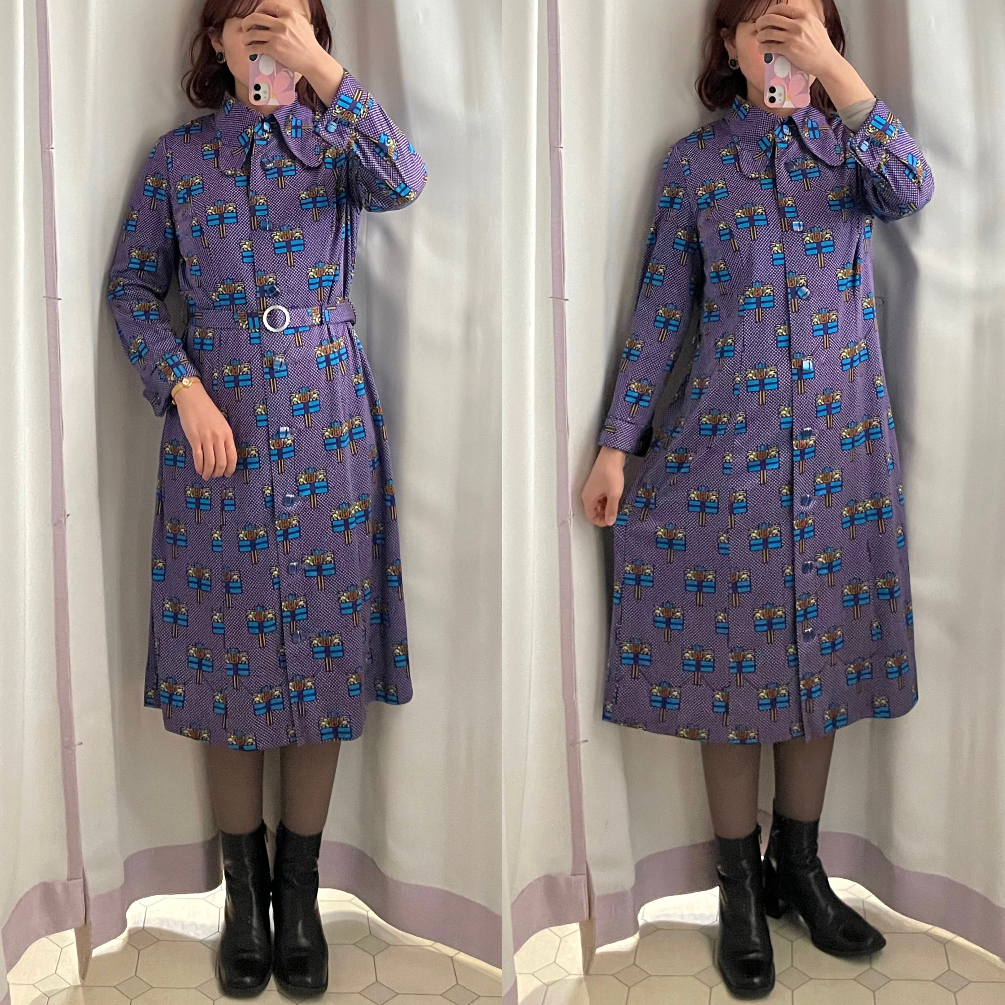Happy Bag 2025 - emblem pattern dog-ear collar dress -【レトロ古着 福袋】