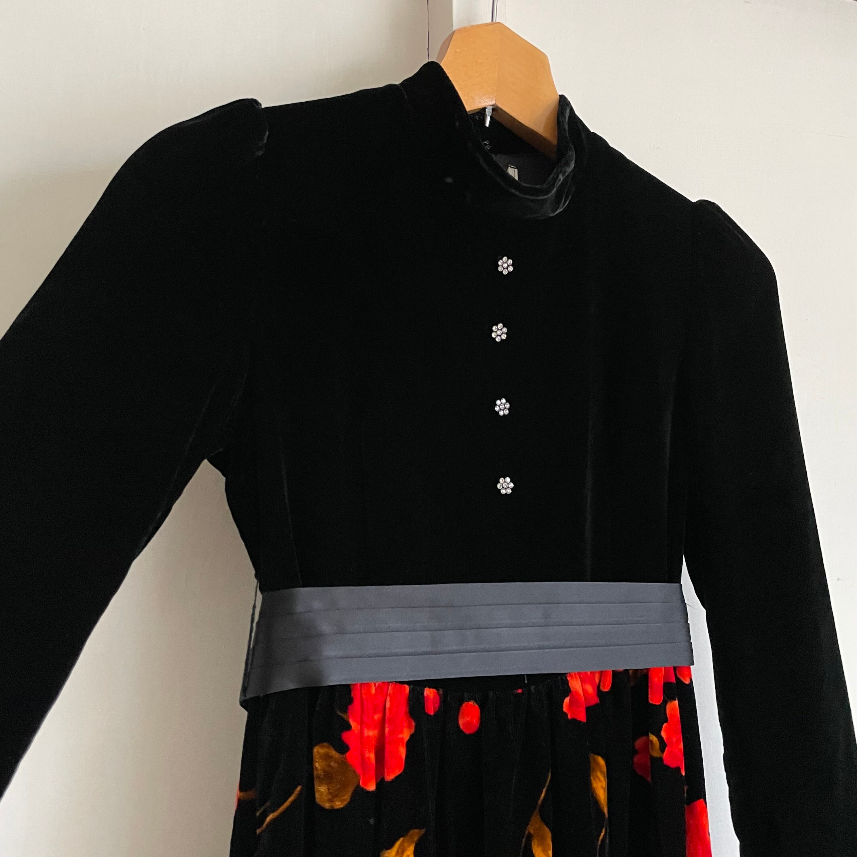 rose pattern puff sleeves velvet dress〈レトロ古着 薔薇柄 ベルベット ワンピース ジャパンヴィンテージ〉