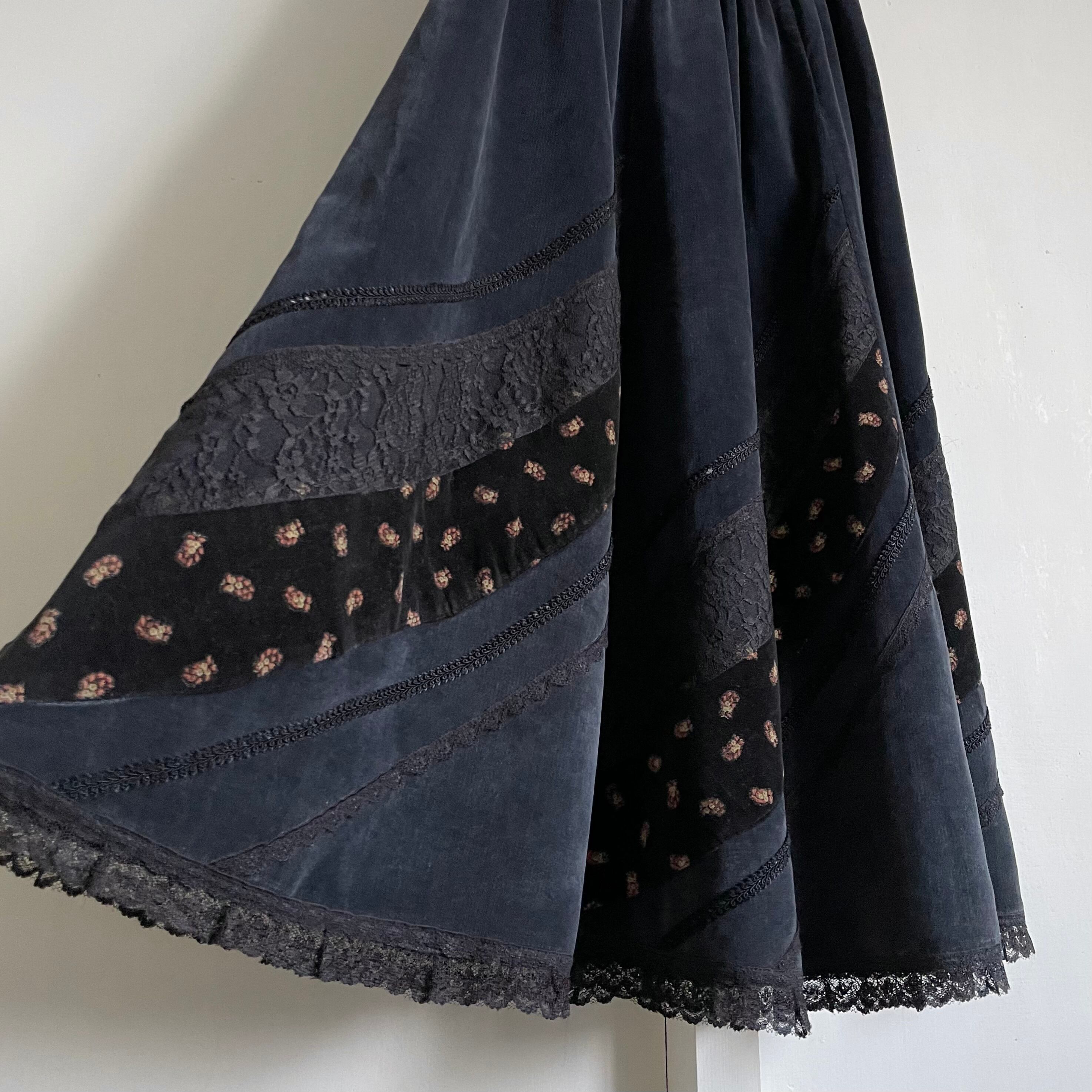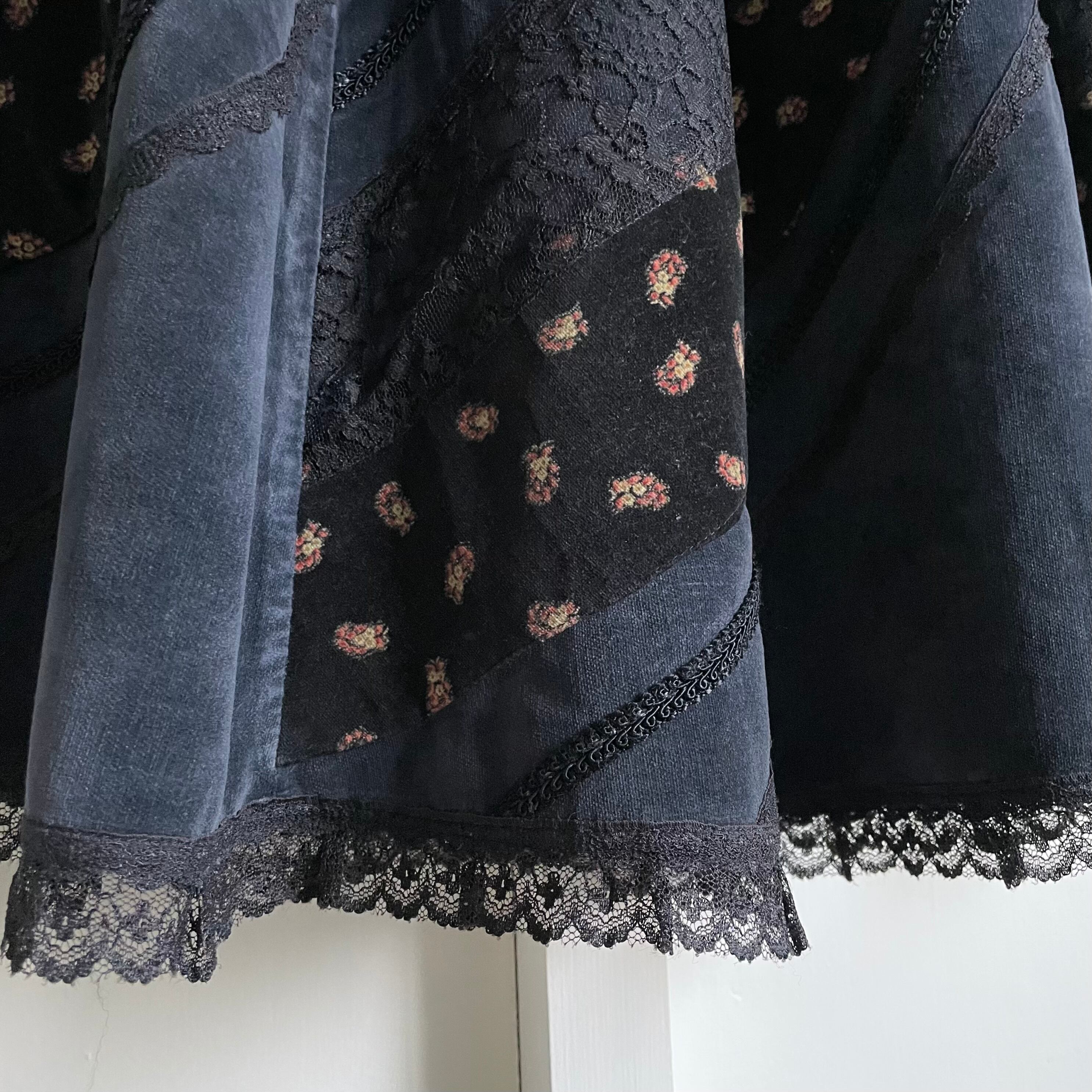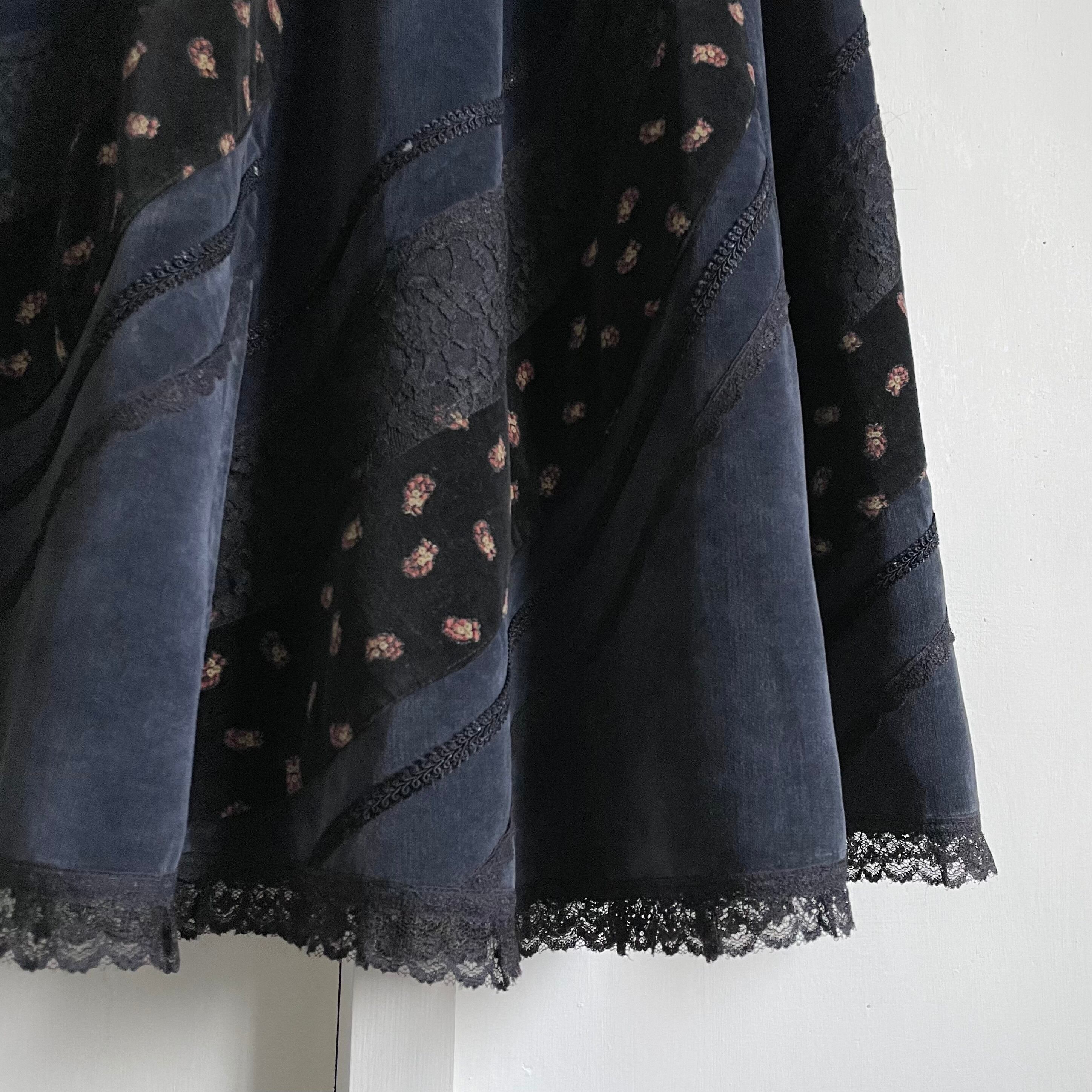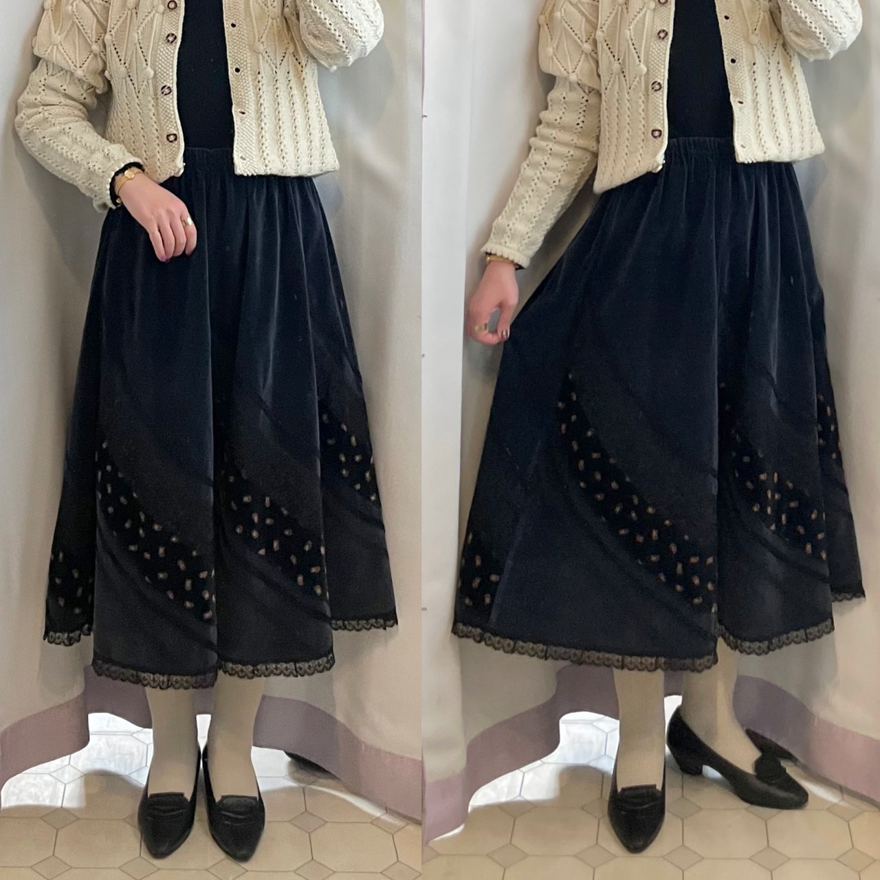 lace design velvet gathered skirt 〈レトロ古着 レースデザイン ベルベット ギャザースカート ジャパンヴィンテージ〉