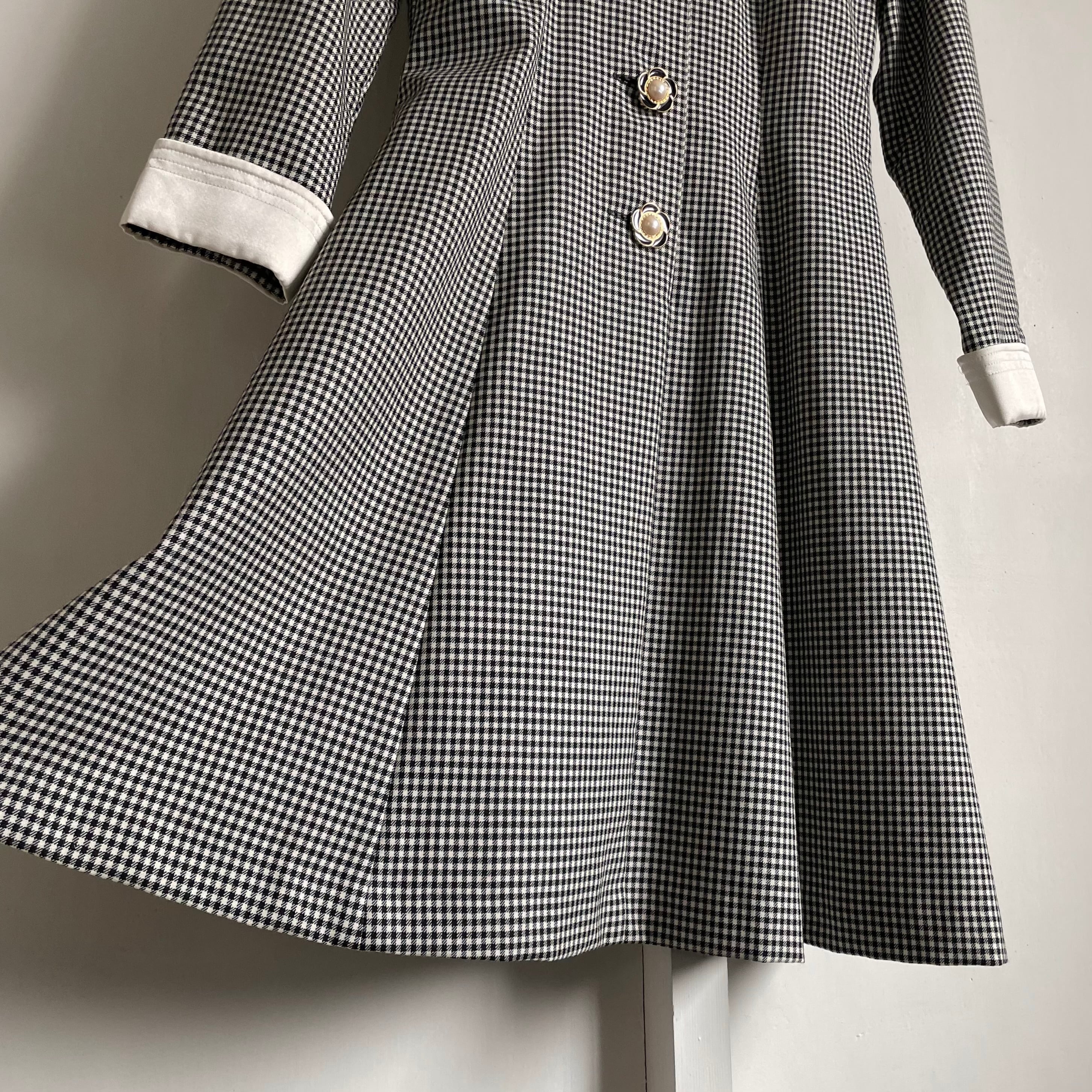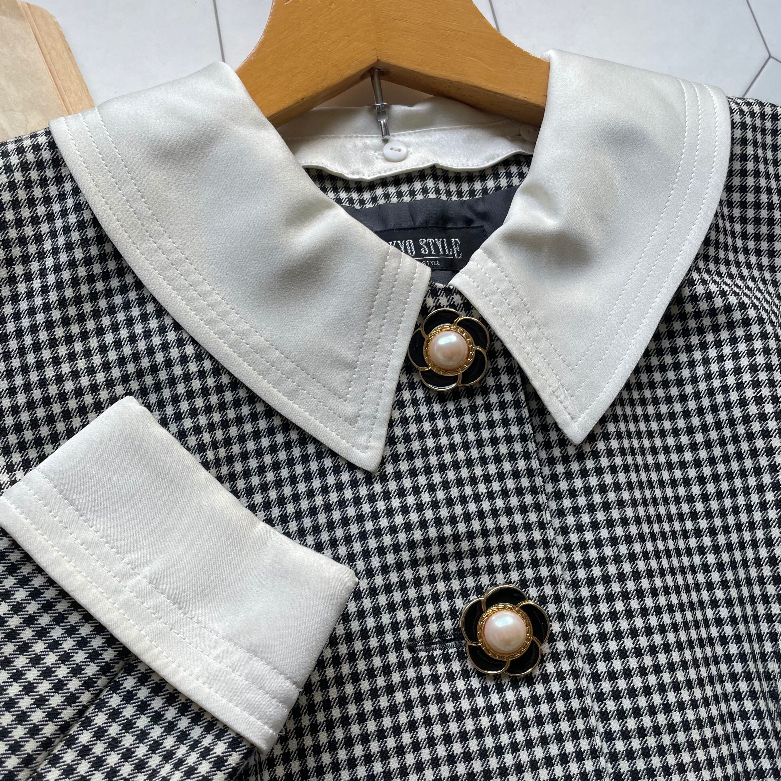 flower button shepherd check 2way dress〈レトロ古着 フラワーボタン シェパードチェック 2way ワンピース ジャパンヴィンテージ〉