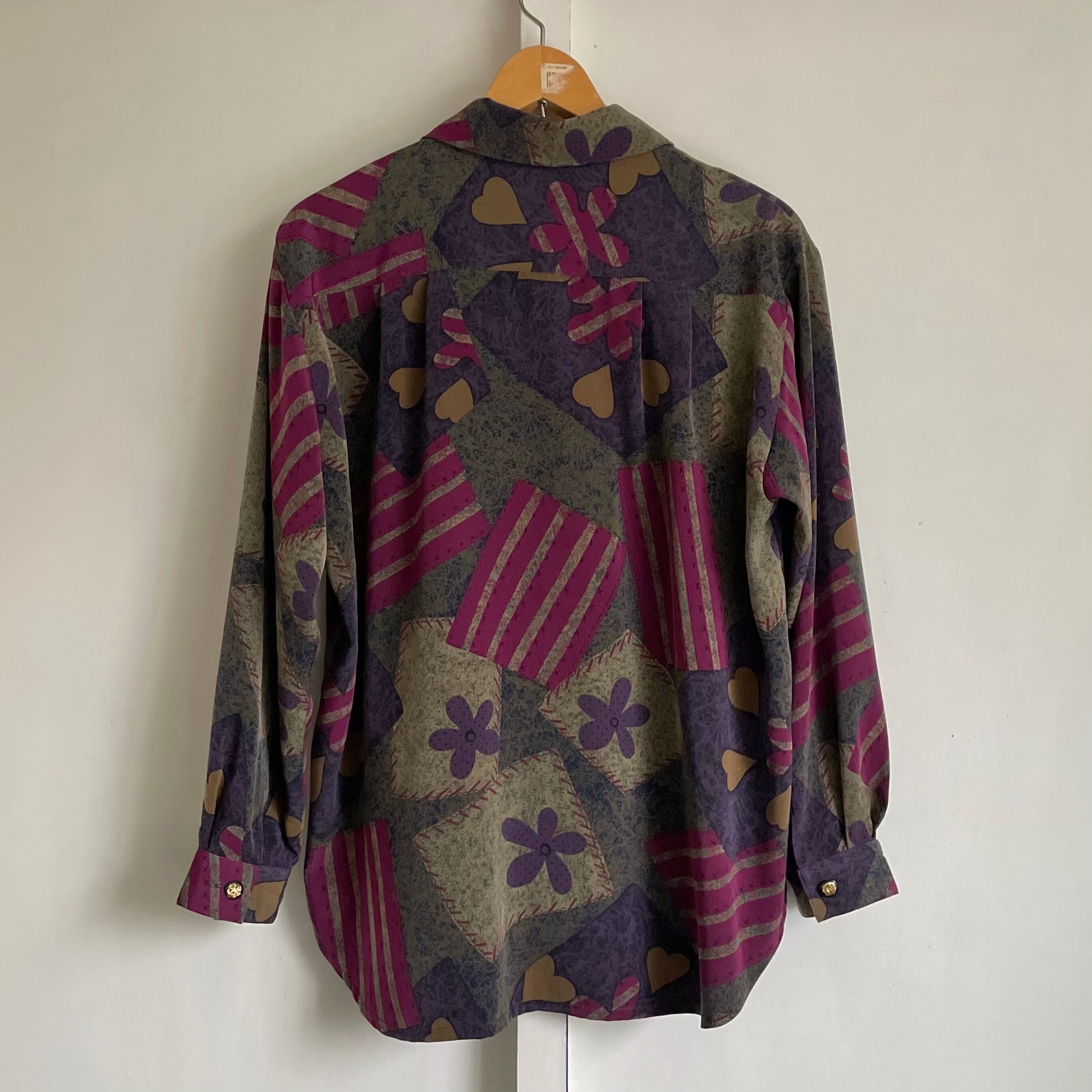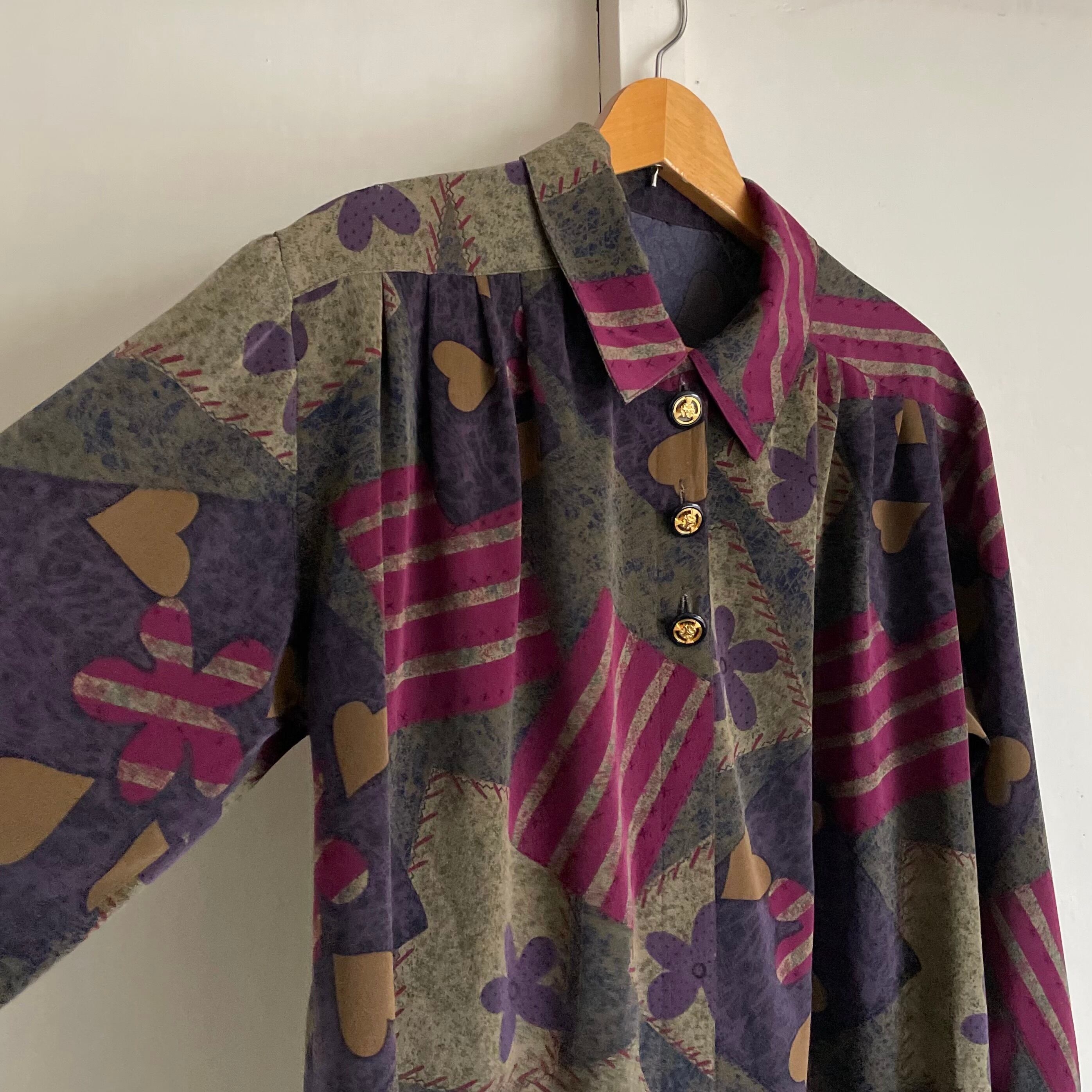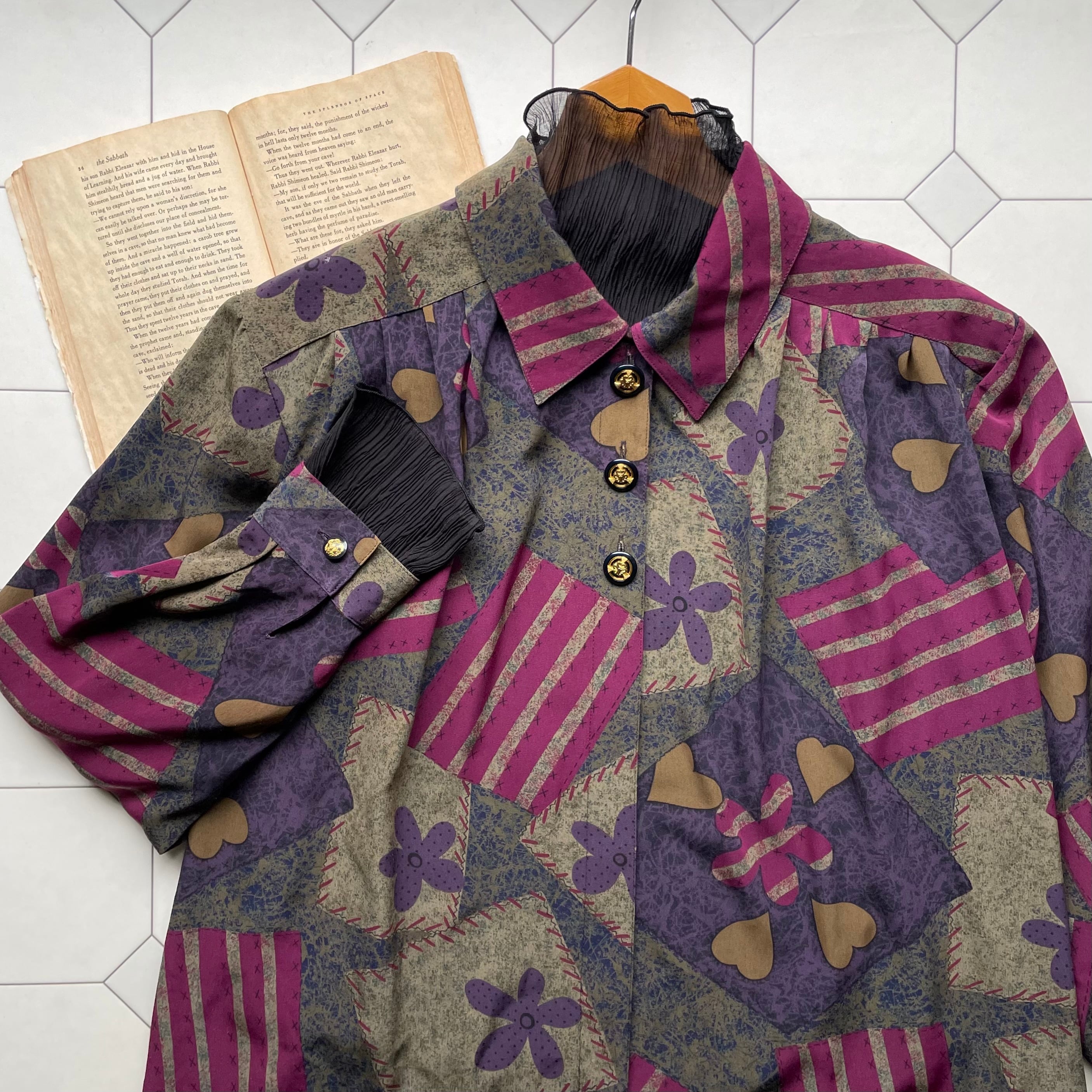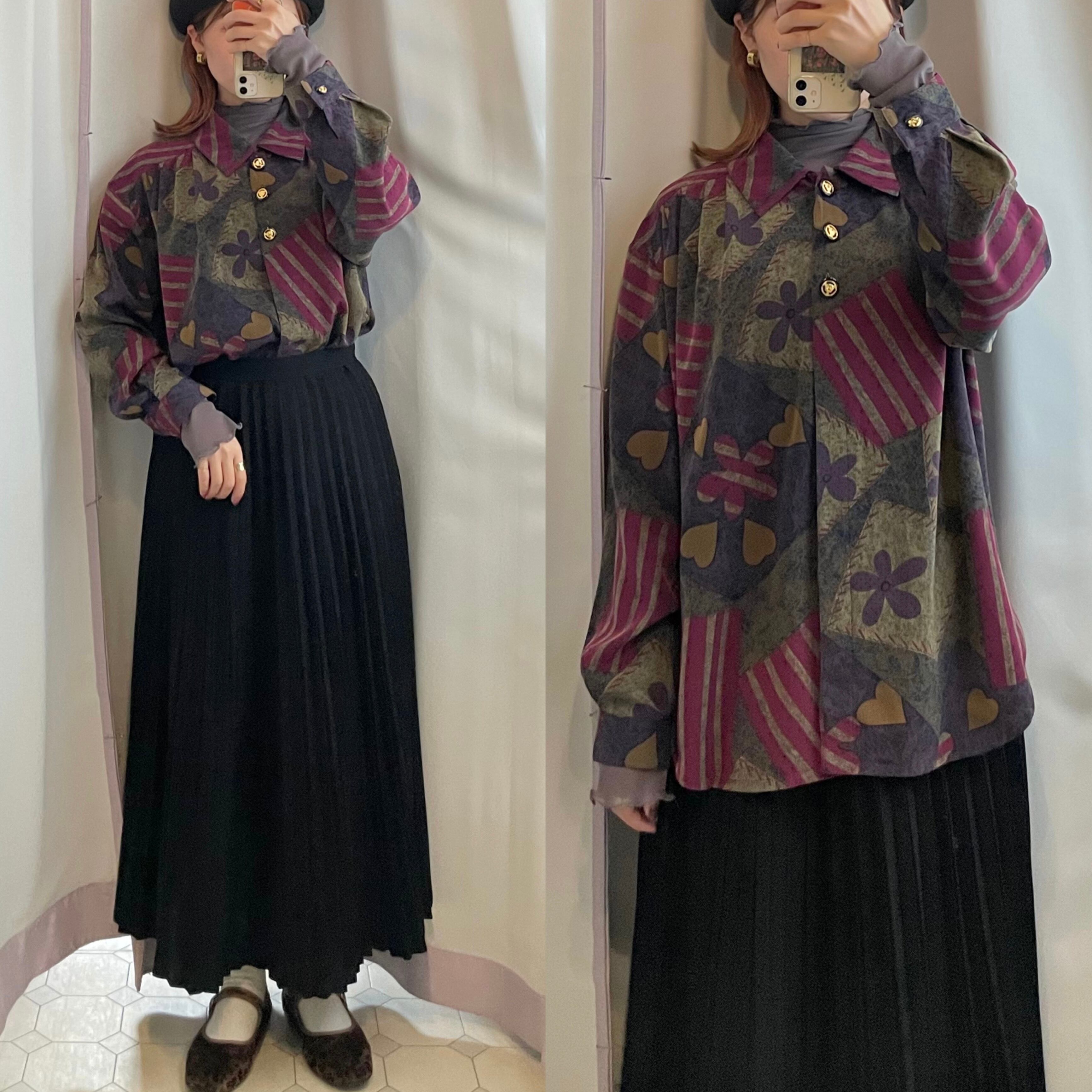 heart & flower patterned shirt 〈レトロ古着 ハート&フラワー 柄シャツ ジャパンヴィンテージ〉