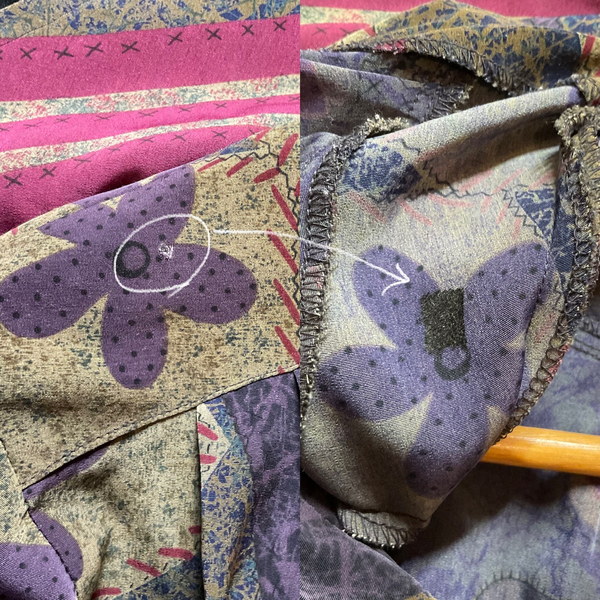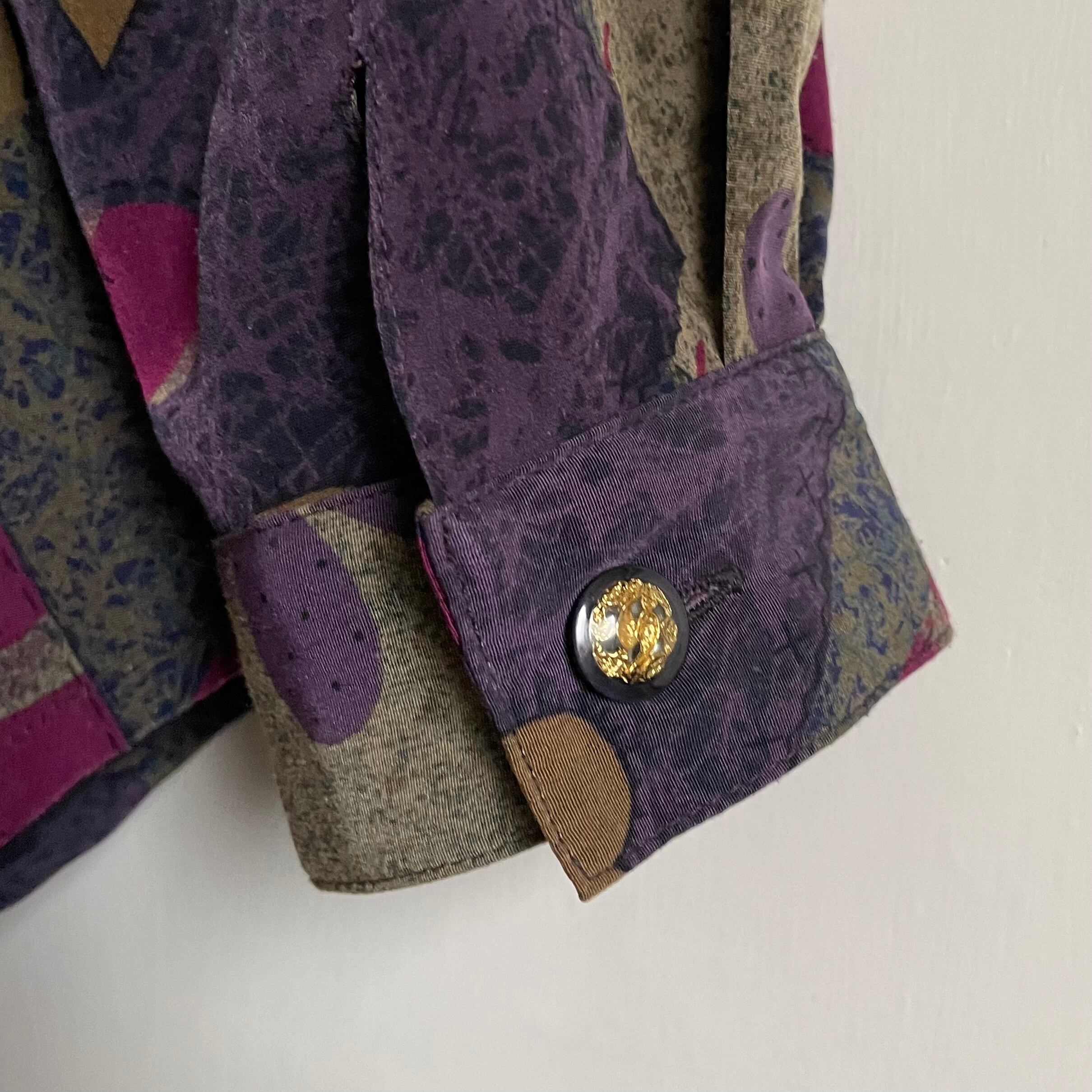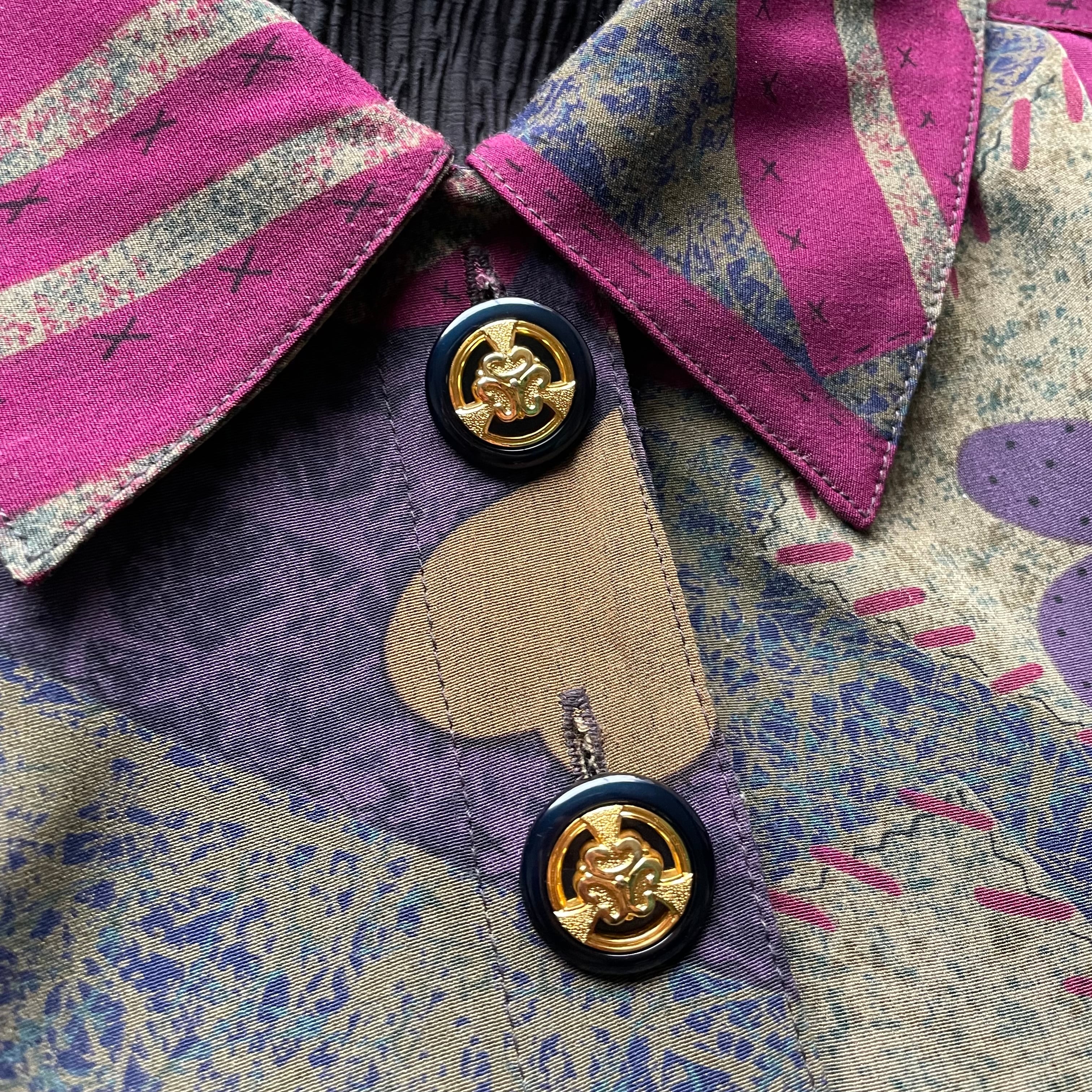 第3ボタンまでは大ぶりなものがあしらわれており、柄に負けないインパクトのあるアクセントに✴︎